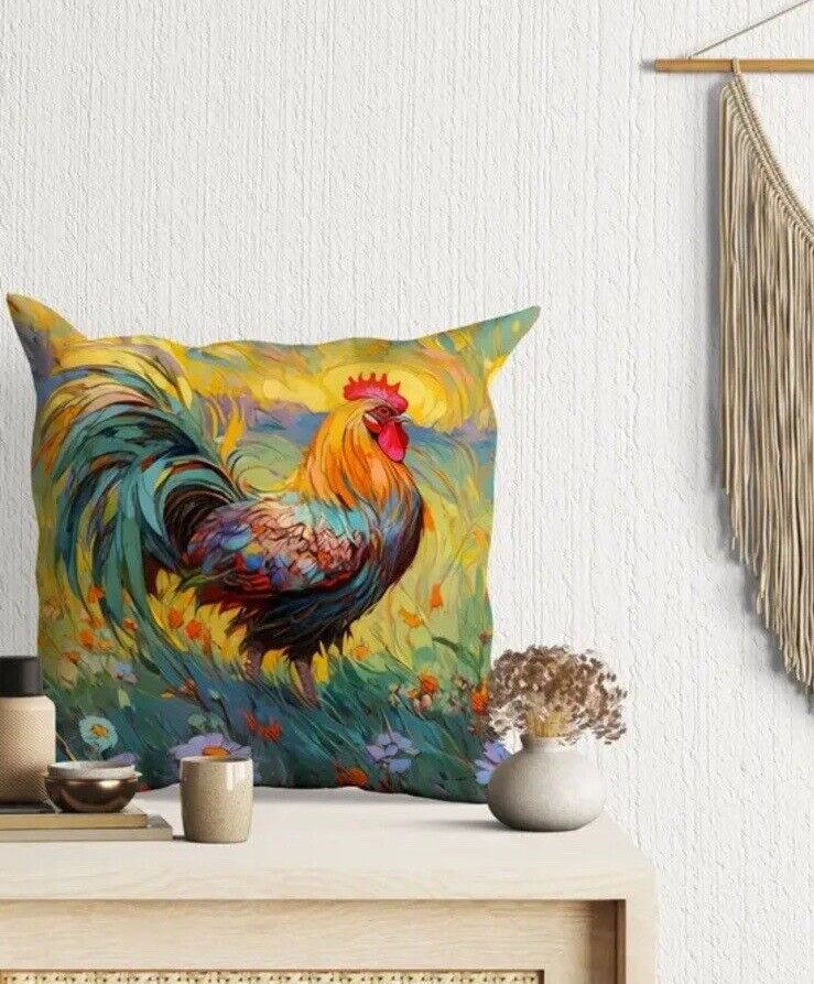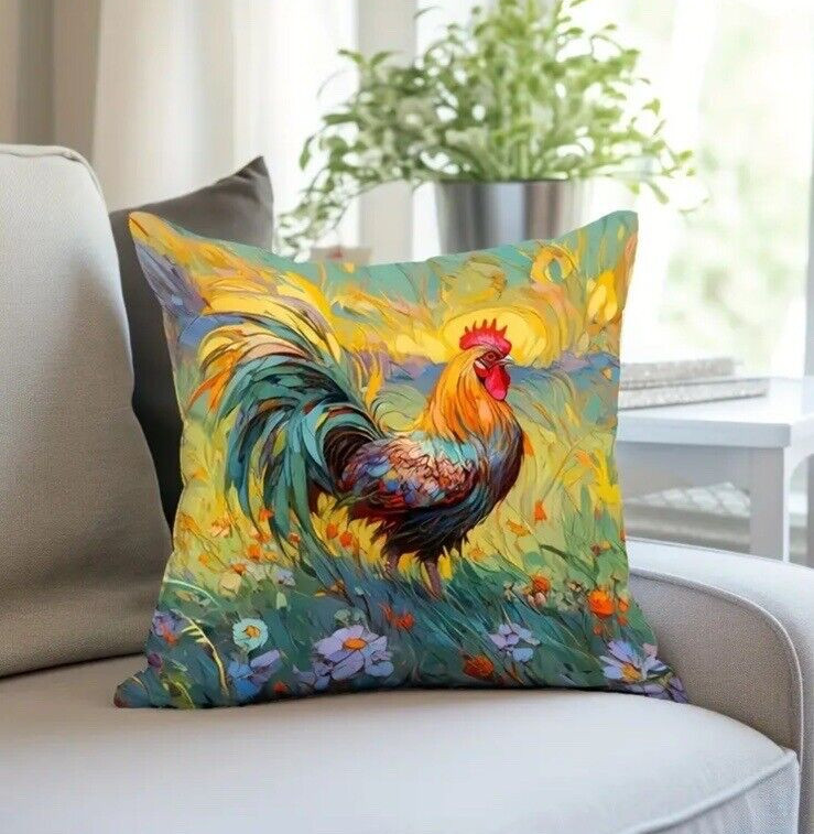 Farmhouse Rooster Cock Chicken 17in x17in Throw Pillow Country Decorative