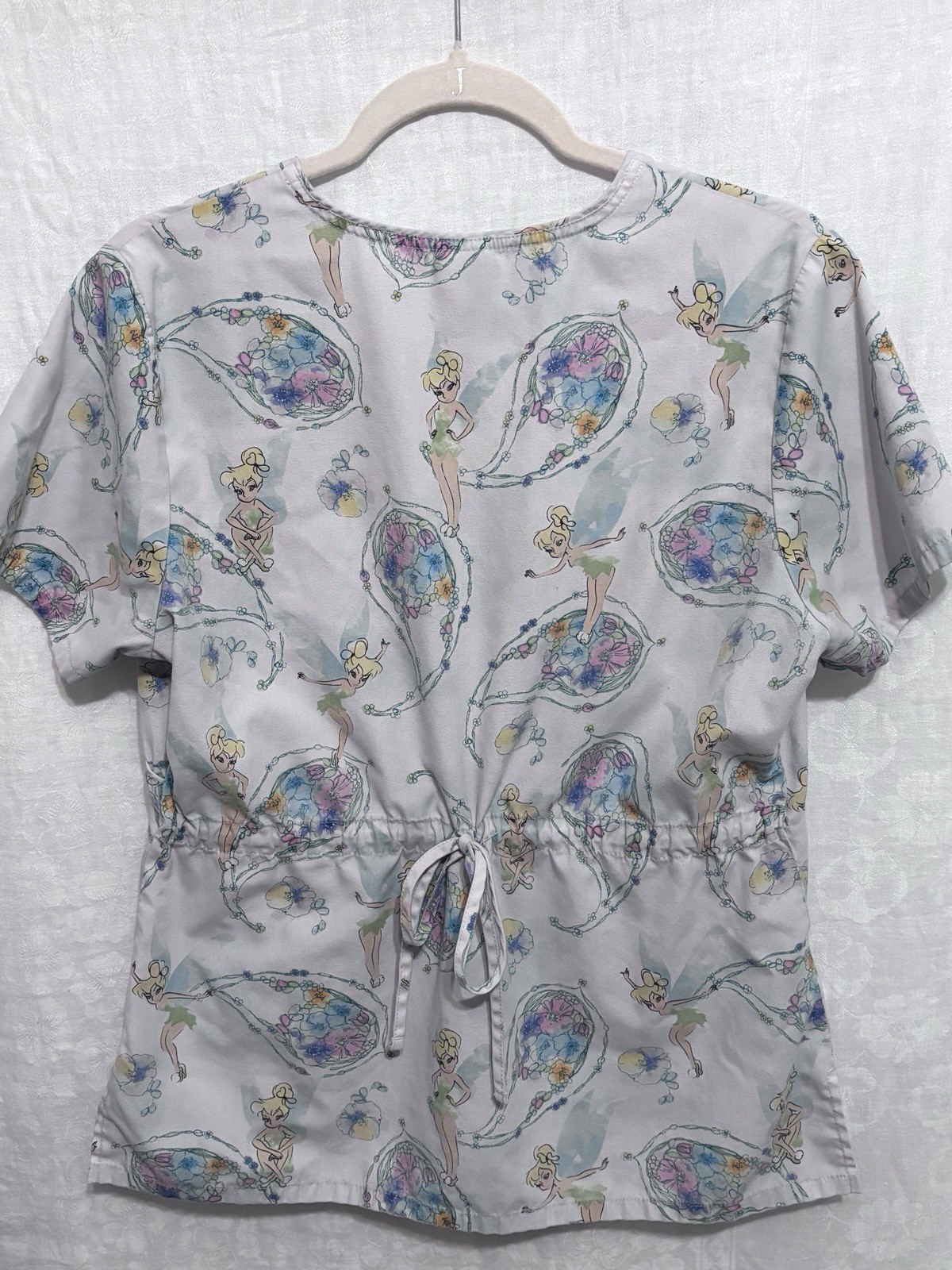 как выглядит Vintage Disney Tinker Bell Womens Nurse Scrub Top Size Small Floral Paisley фото