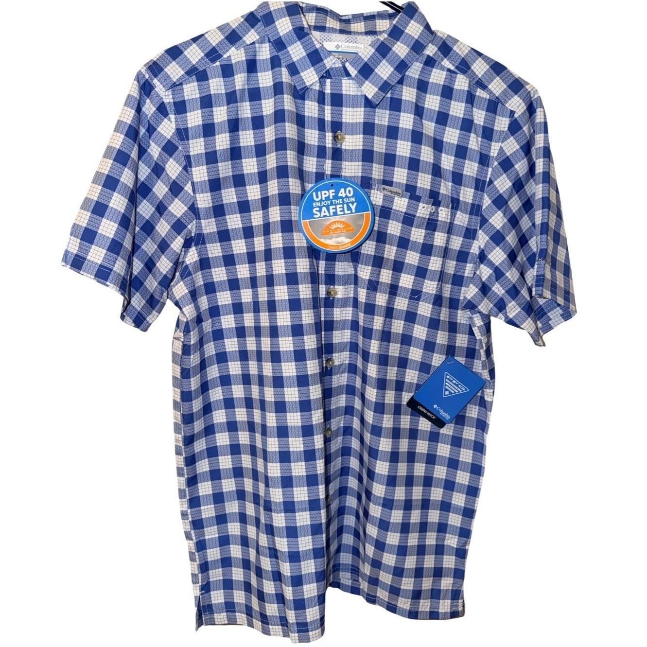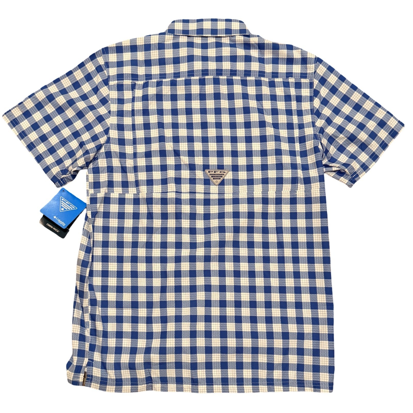 Columbia PFG Mens Super Slack Tide Camp Shirt Blue Gingham UPF 40 Small NWT