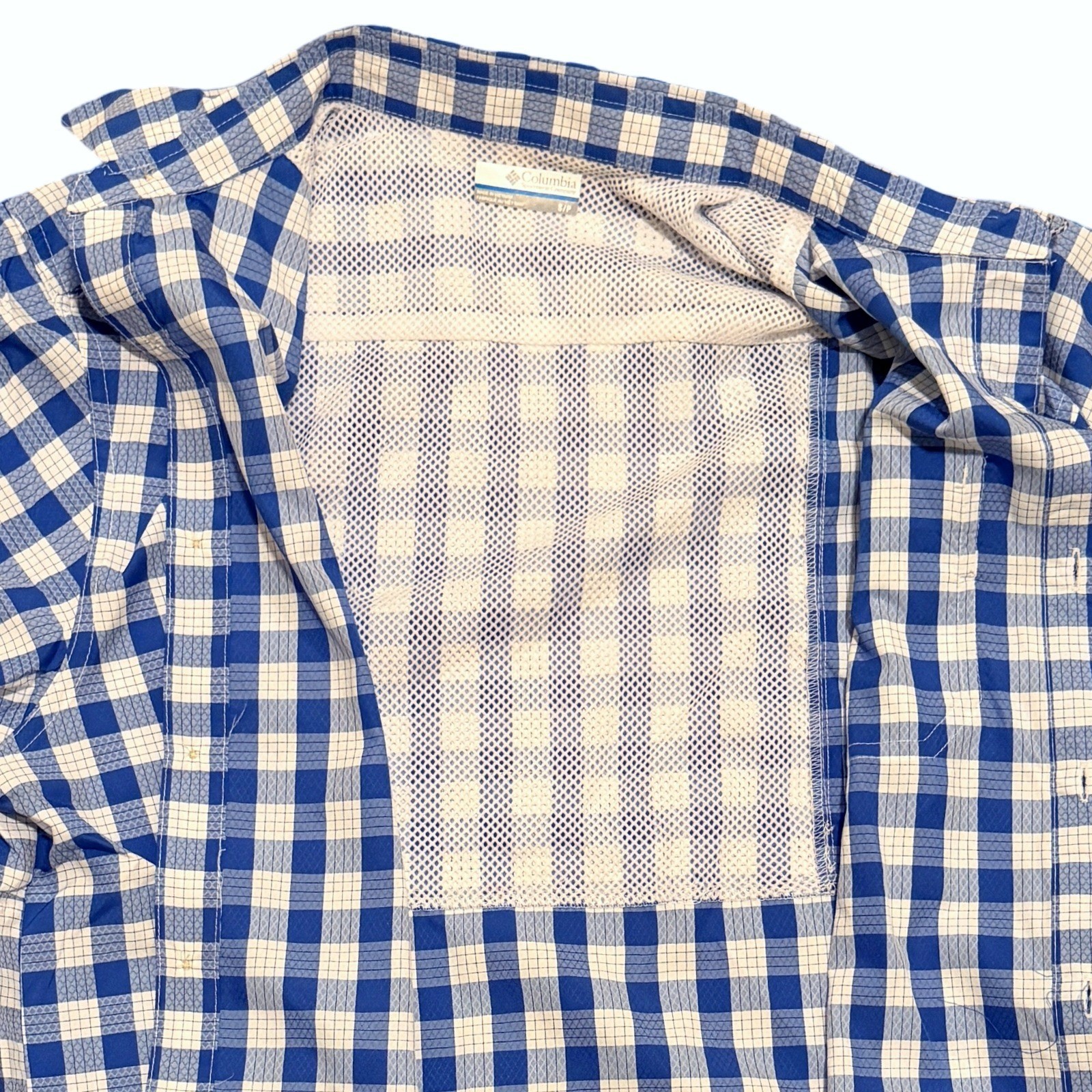 как выглядит Columbia PFG Mens Super Slack Tide Camp Shirt Blue Gingham UPF 40 Small NWT фото