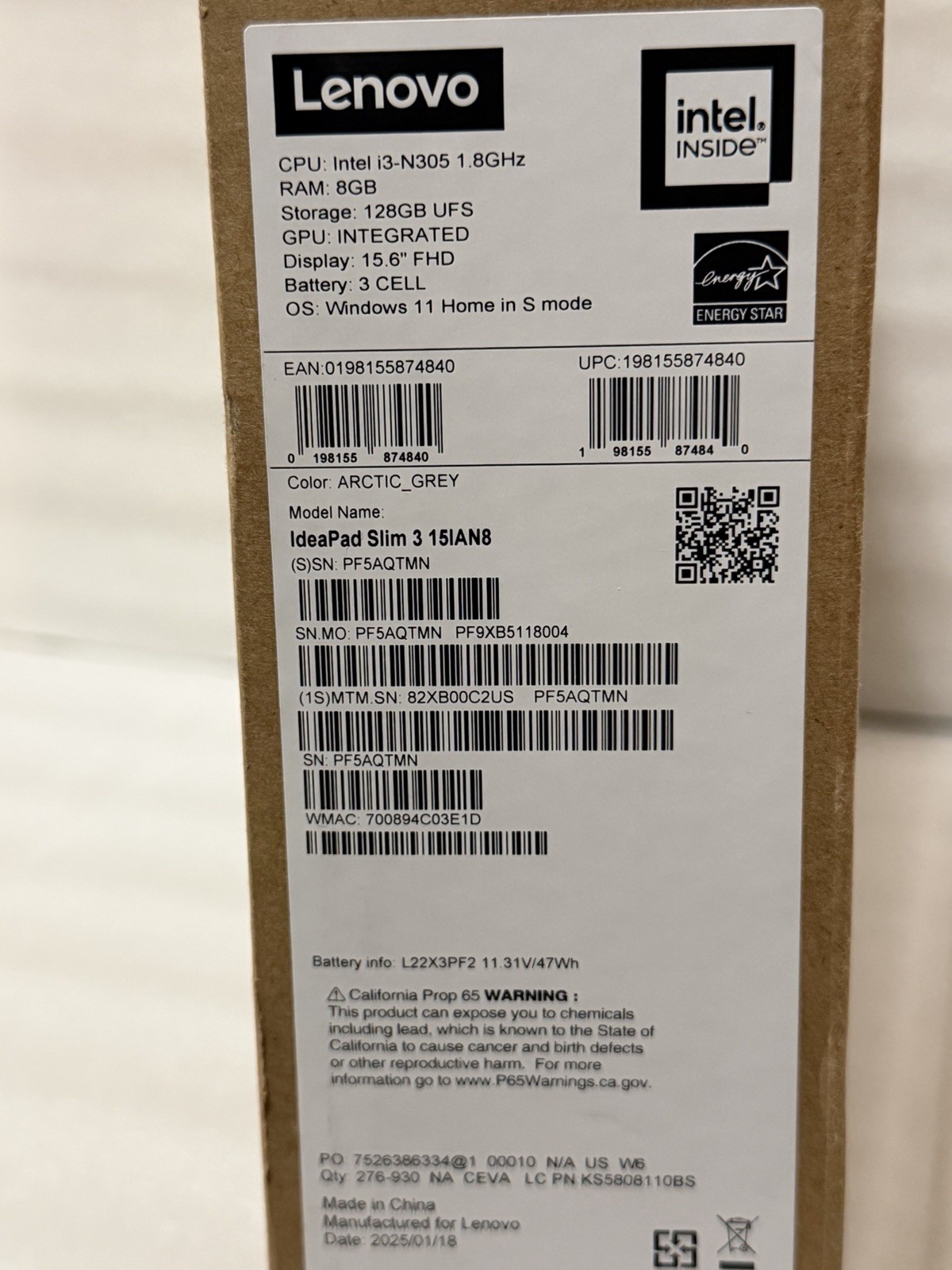 Lenovo IdeaPad Slim 3i 15.6 FHD Intel i3-N305/8GB/128GB/Windows11 Laptop