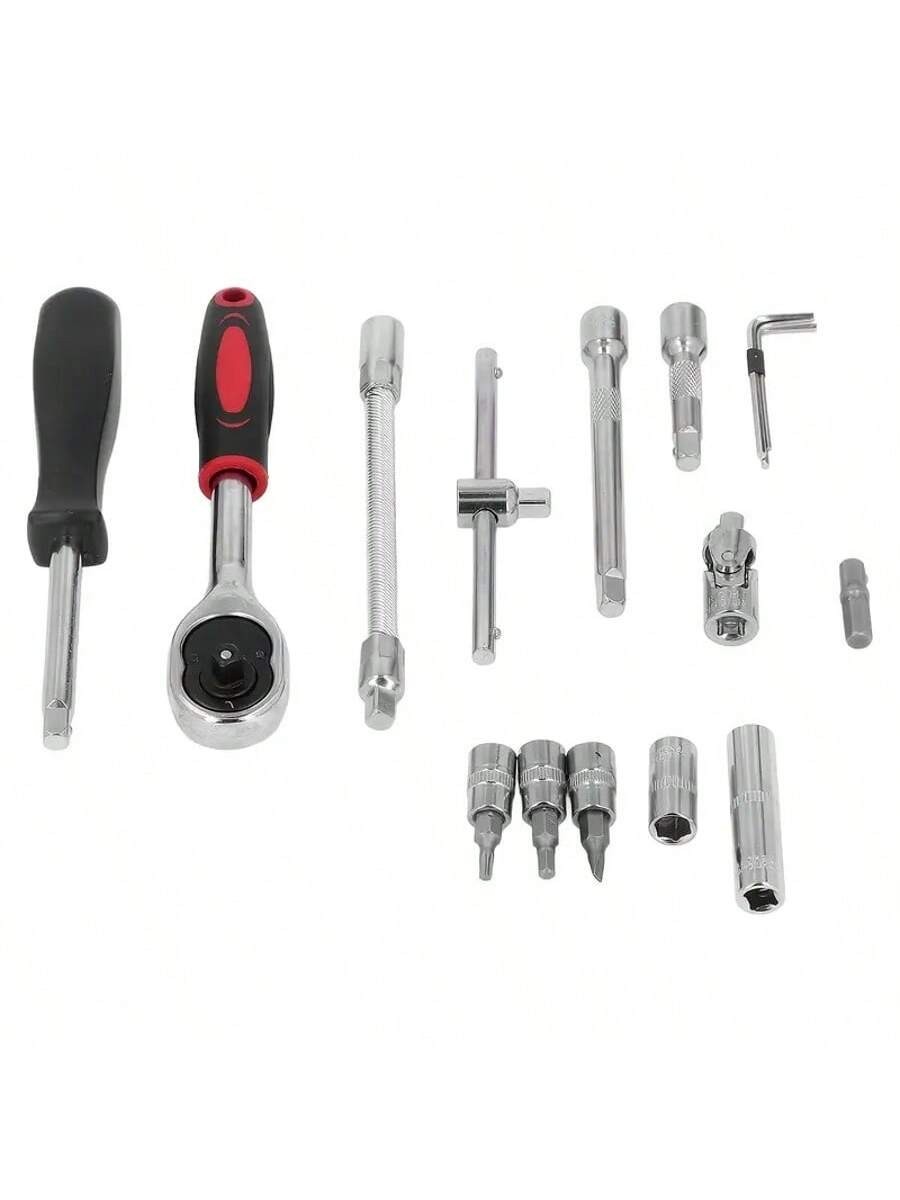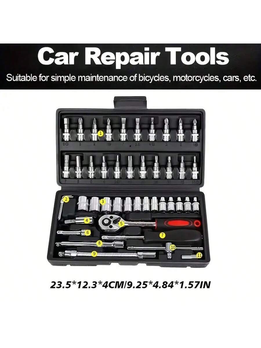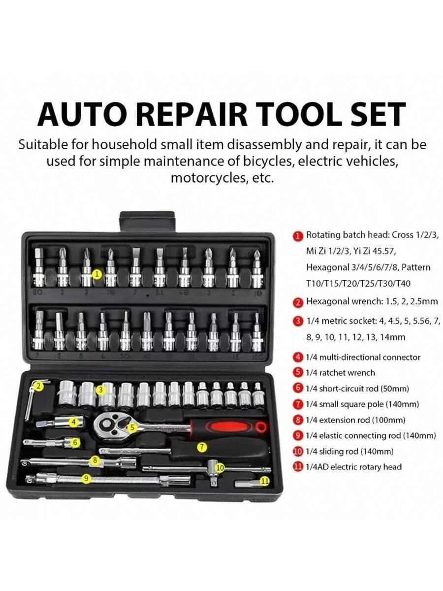 как выглядит 53Pcs Socket Wrench Set 1/4" Drive Ratchet Metric Kit Garage Car Repair Tool фото