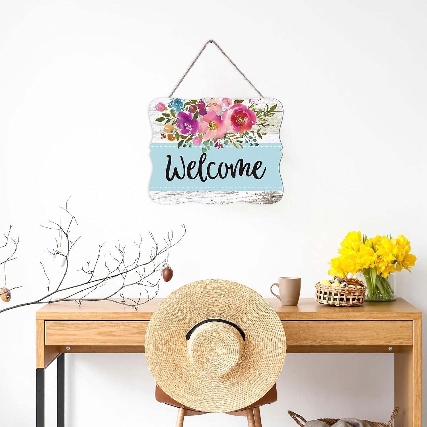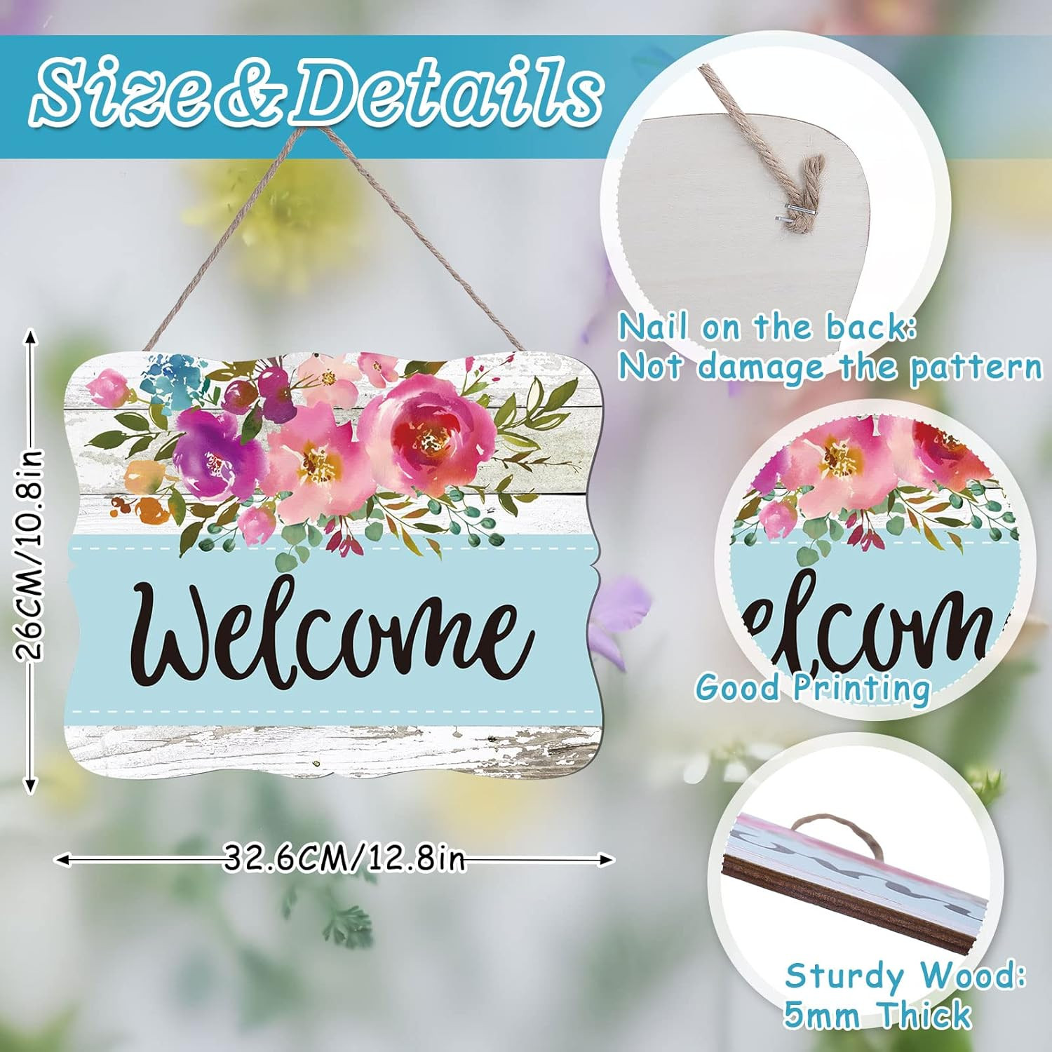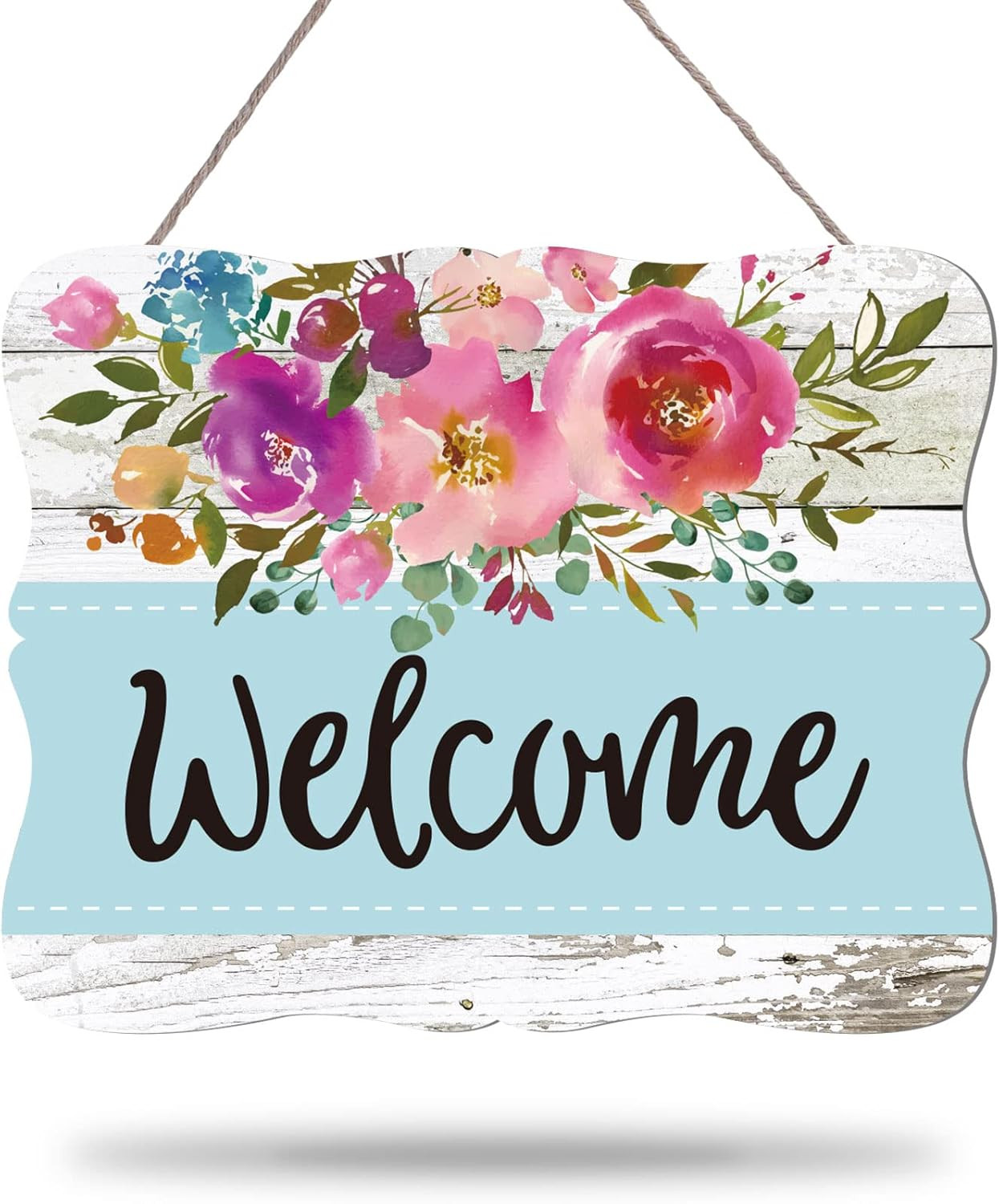 Spring Floral Wooden Welcome Sign Front Door Decor Watercolor Flower Hanging Sig