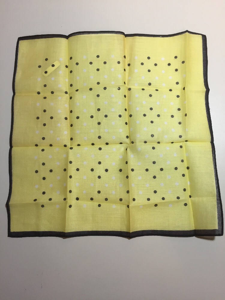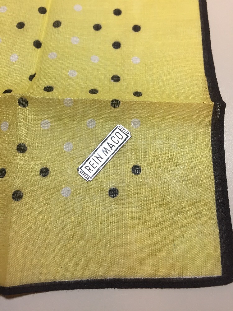 как выглядит Vintage Mid Century Rein Maco Yellow Polka Dot Handkerchief 11.5 Square фото