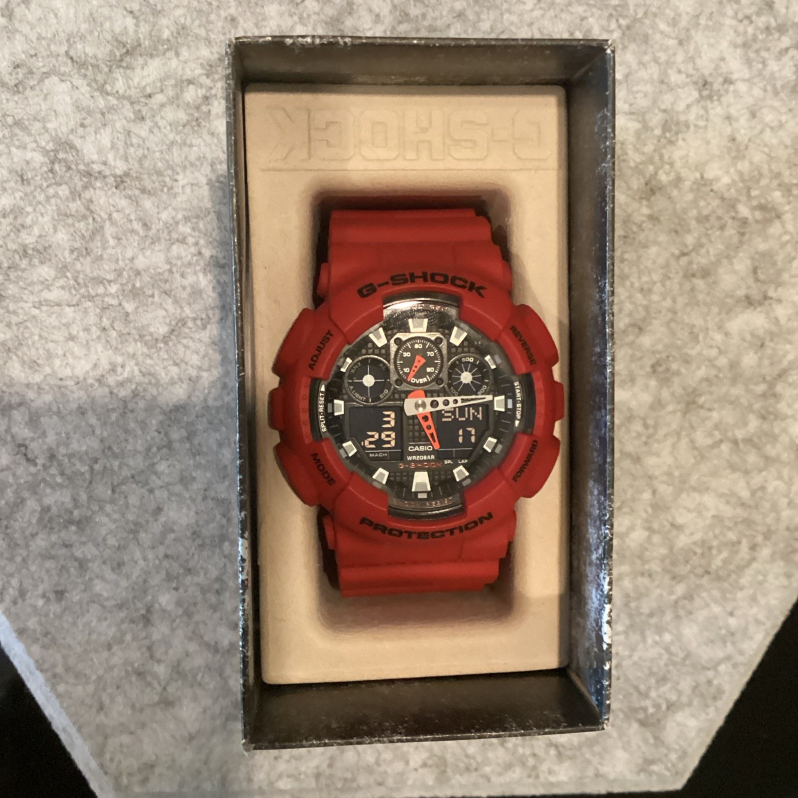 как выглядит Casio GA-100B-4ACR Red W/black Face G Shock Watch фото