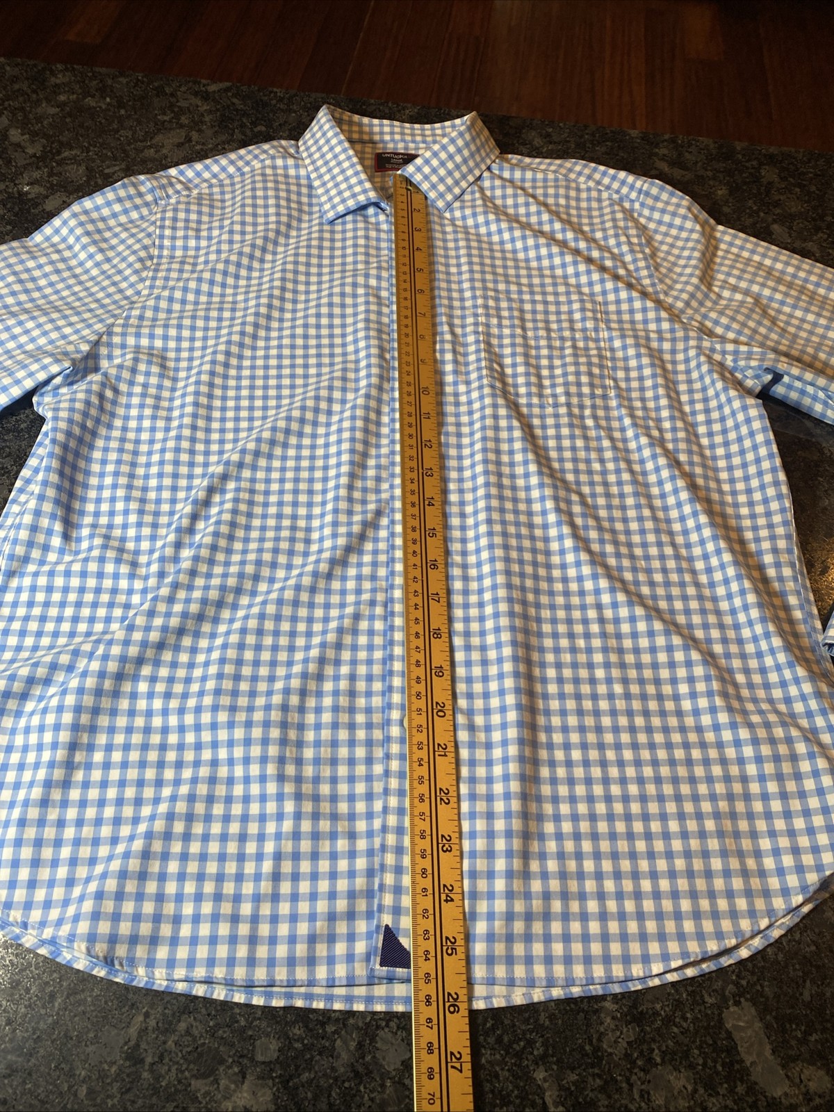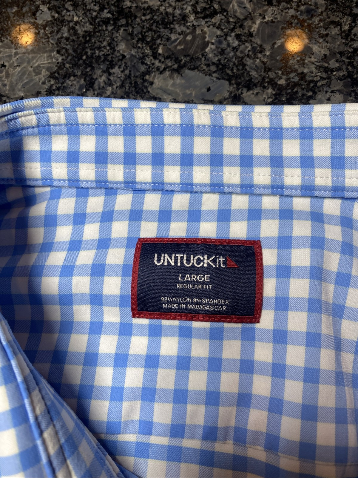 как выглядит UNTUCKit Regular Fit Wrinkle Free Sz L Mens Blue Check Plaid Long Sleeve Shirt фото