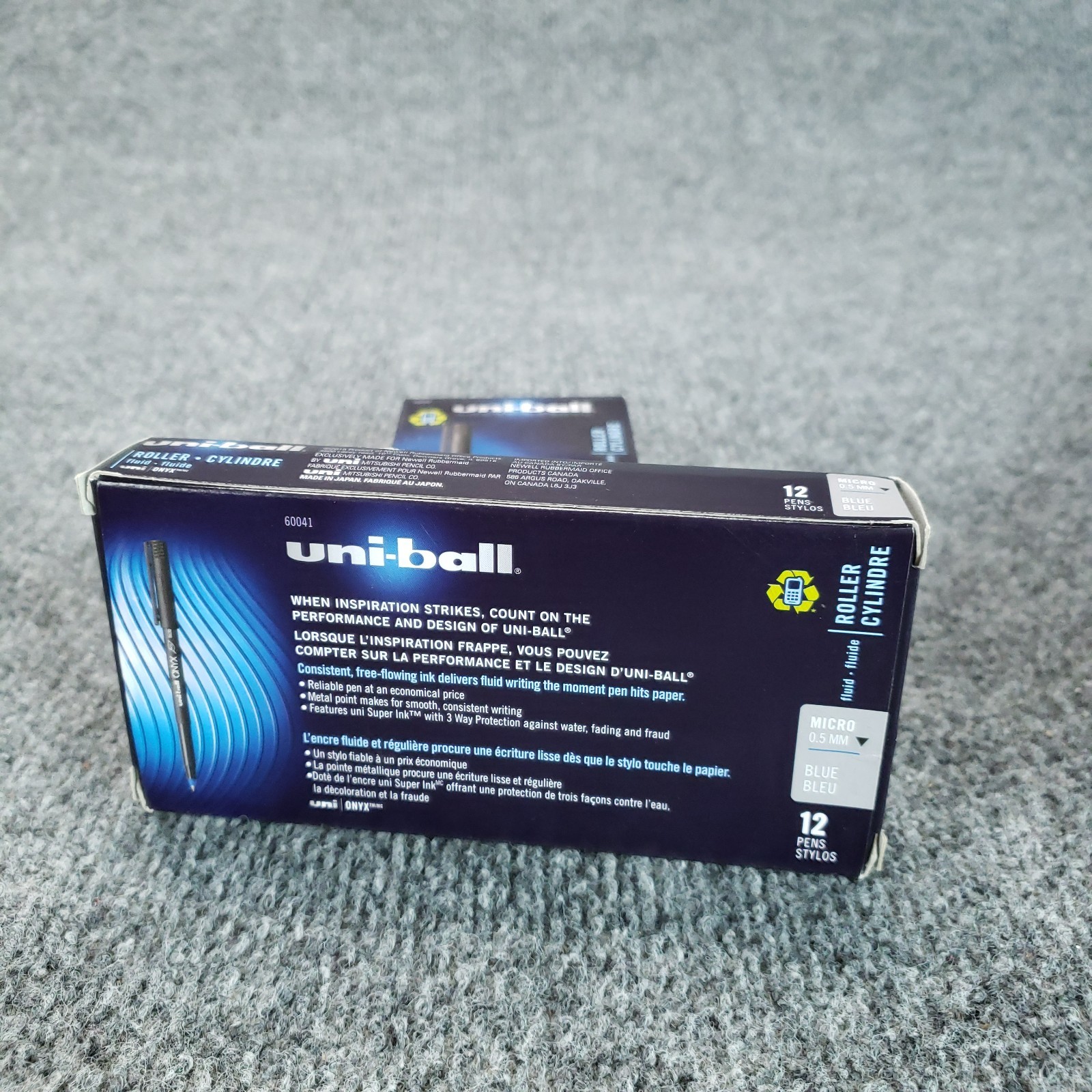 Uni-ball Onyx Roller Cylinder Micro 0.5mm Blue 12 Pens 2-Pack Rollerball