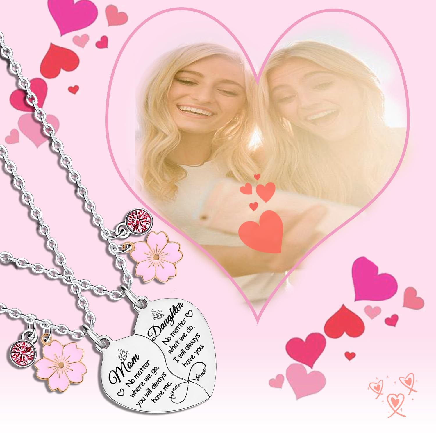 2 Pcs Mother Daughter Matching Necklaces Set Mother's Day Gift for Mom