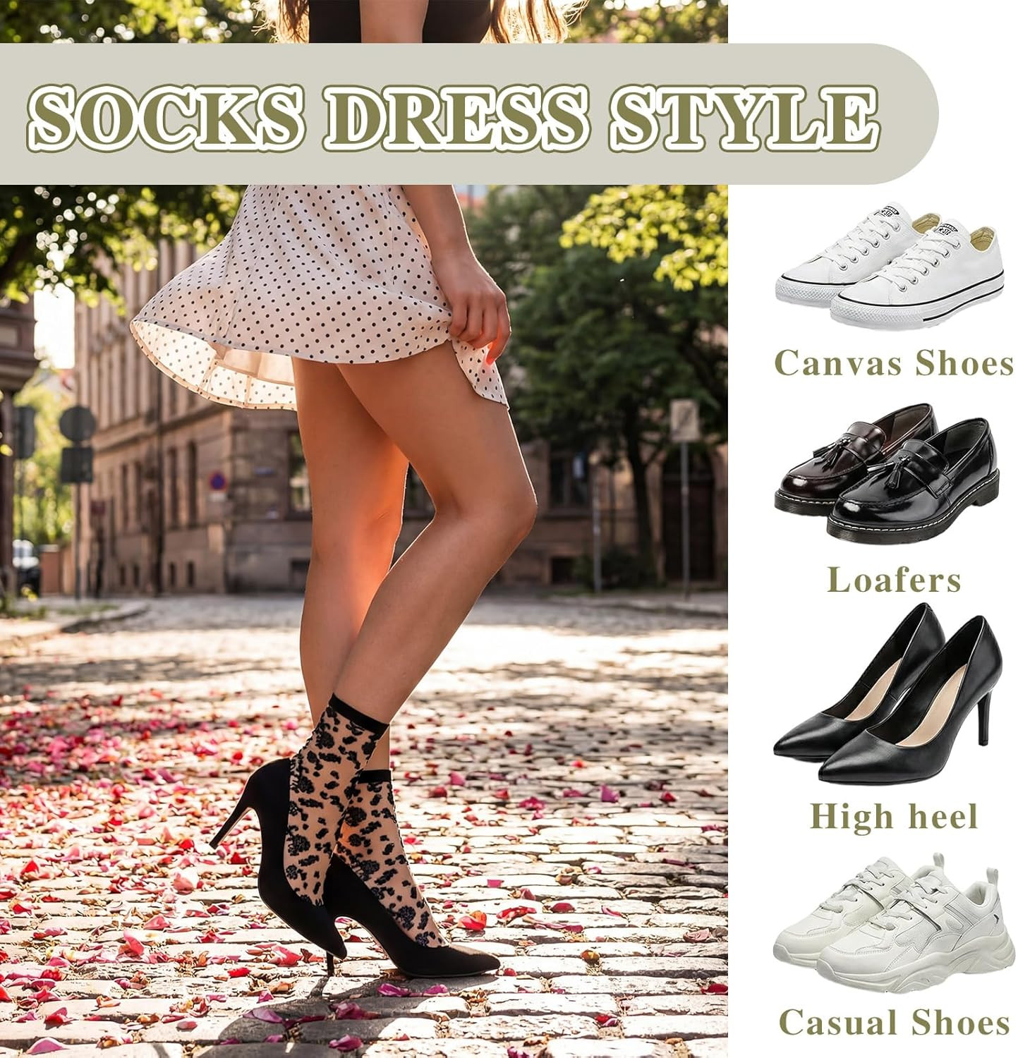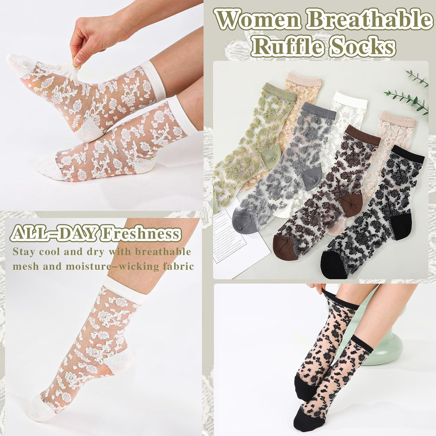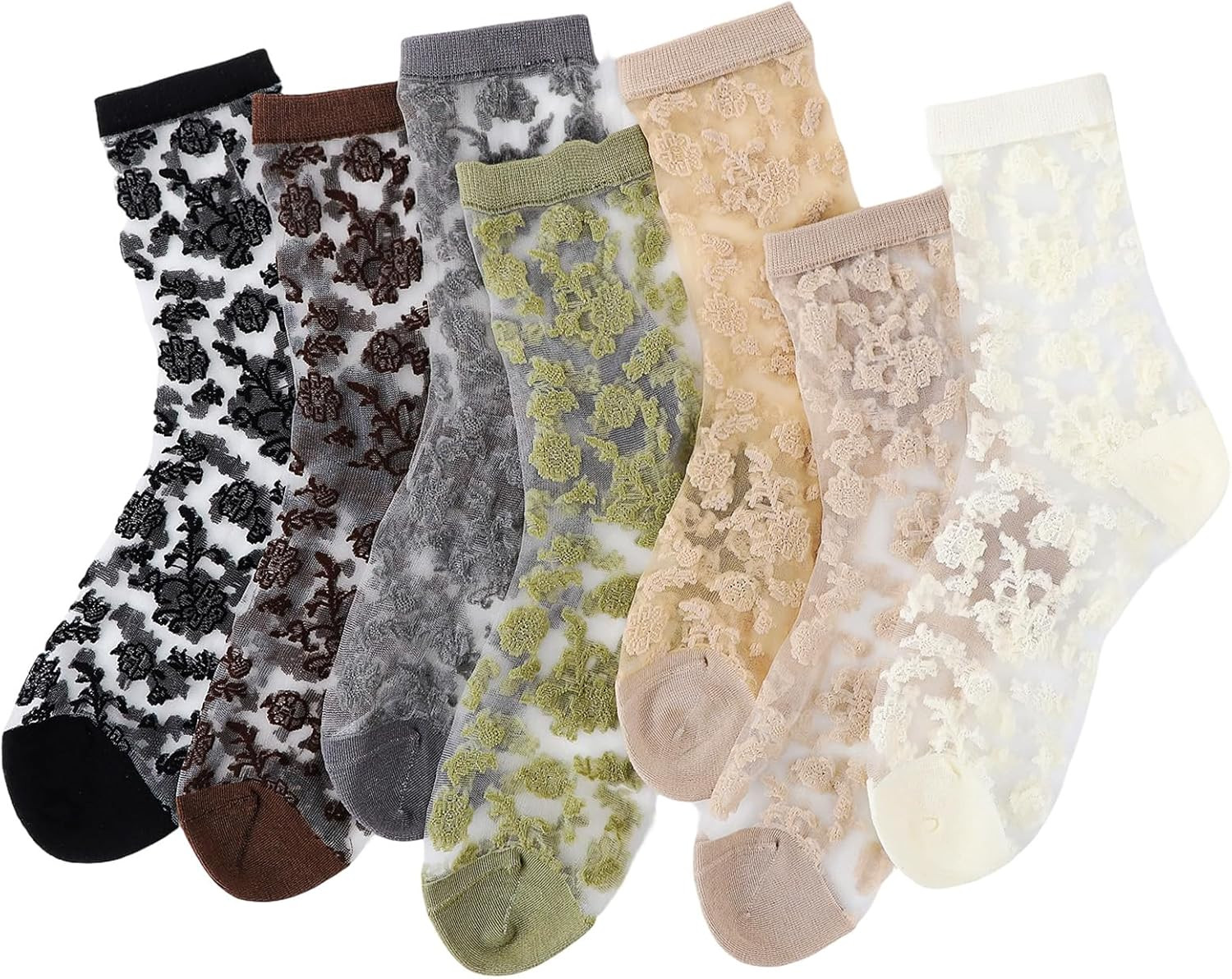 7 Pack Floral Sheer Socks Lace Socks Women Crystal Ballet Style Mesh Elastic for