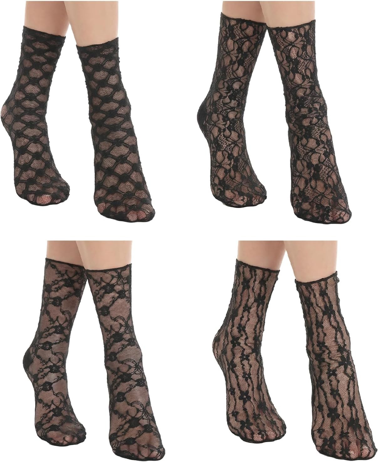 4 Pairs Lace Socks, Fishnet Socks Lace Ankle Sock Ruffle Sheer Mesh Flower Antiq