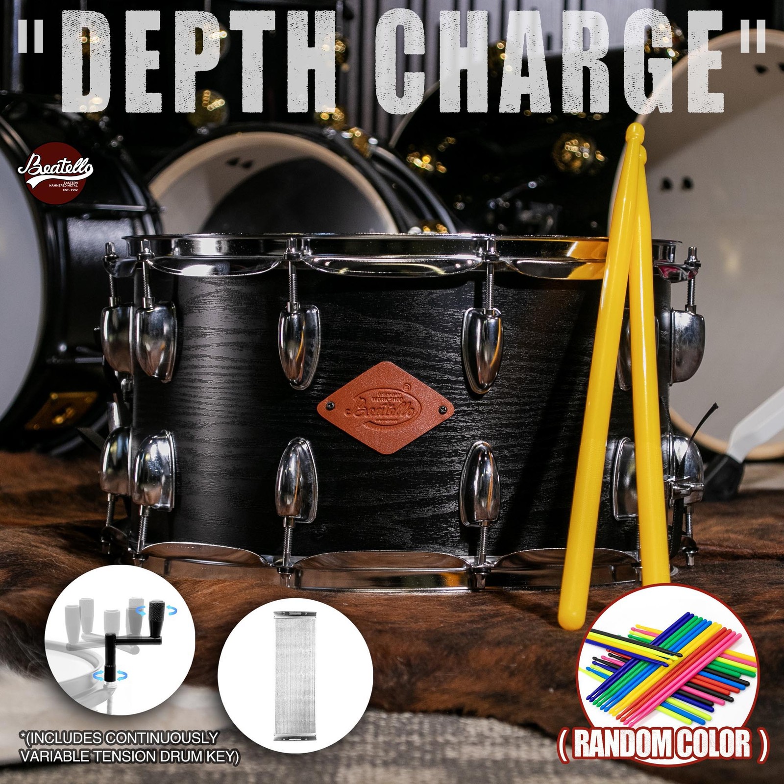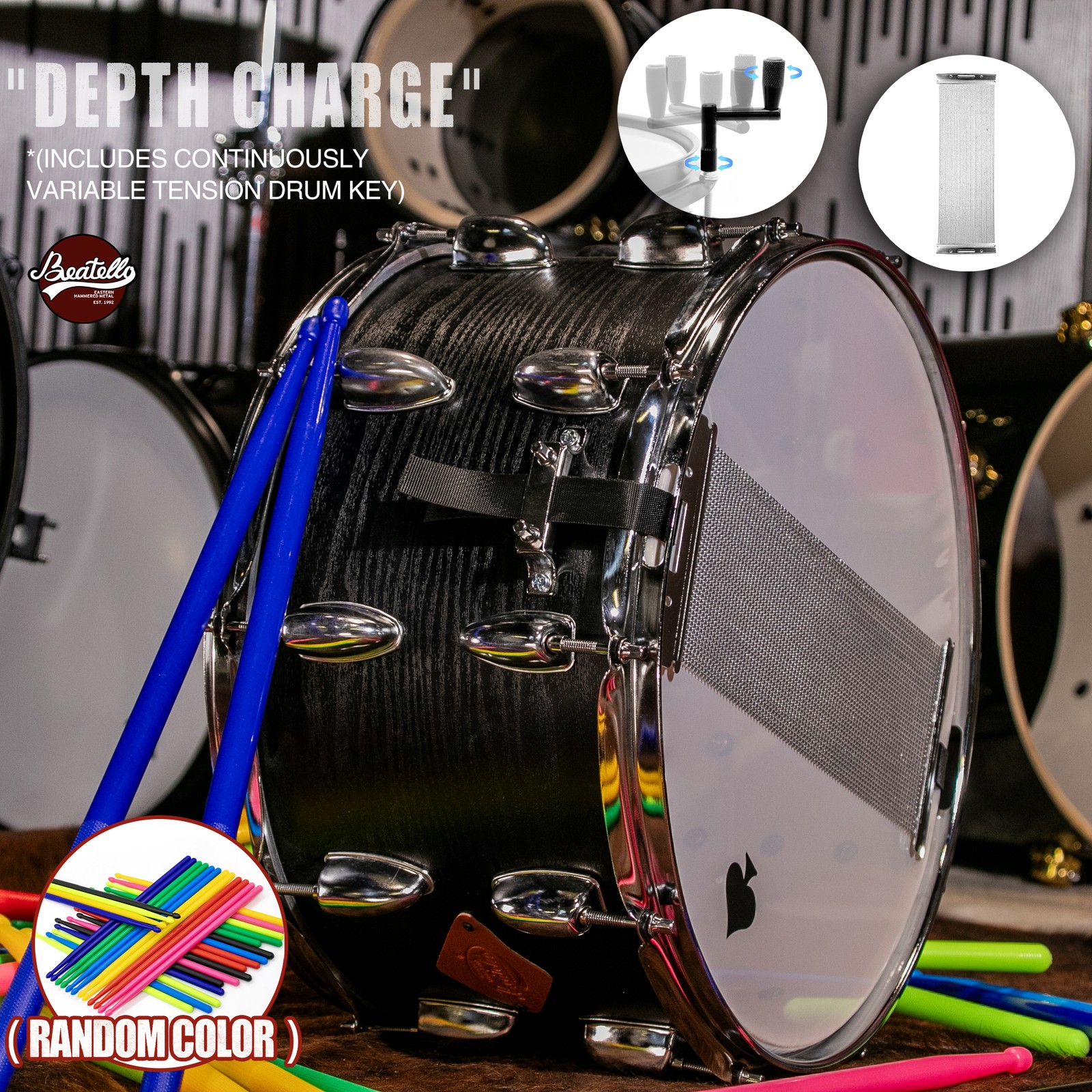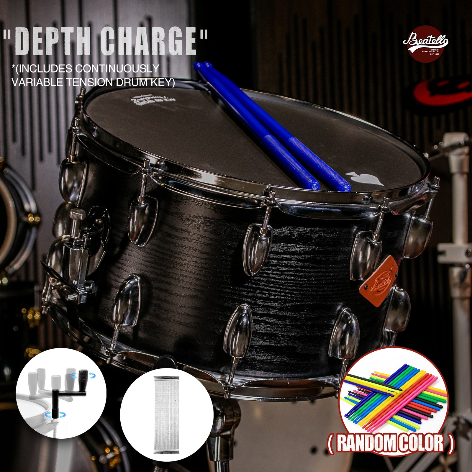 Items Included: Snare Drum, 5A Nylon Resin Drum Sticks x1 (Random Colors), Innovative Drum Keyx1