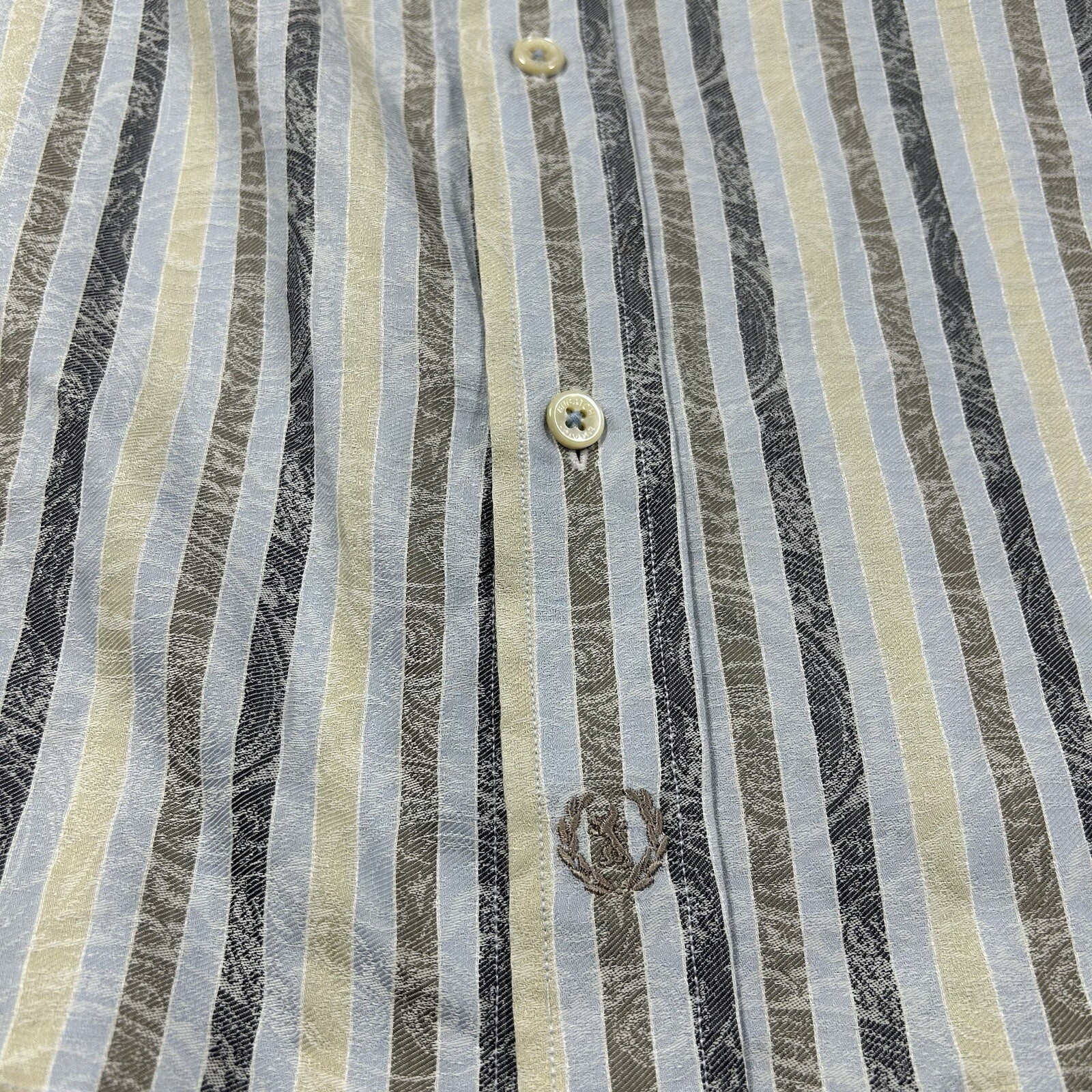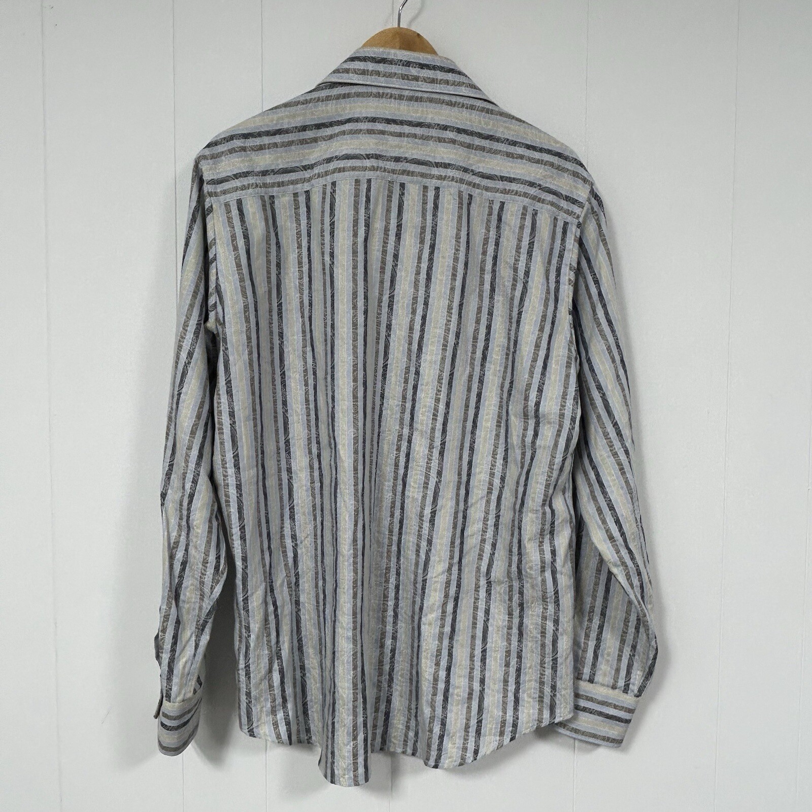 Bugatchi Uomo Shaped Fit Shirt Mens Large Blue Striped Spread Collar 100 Cotton