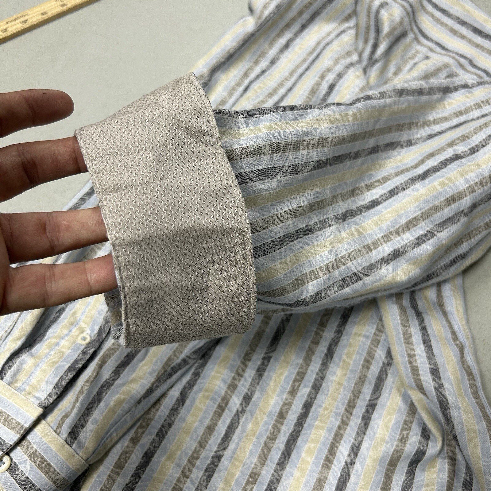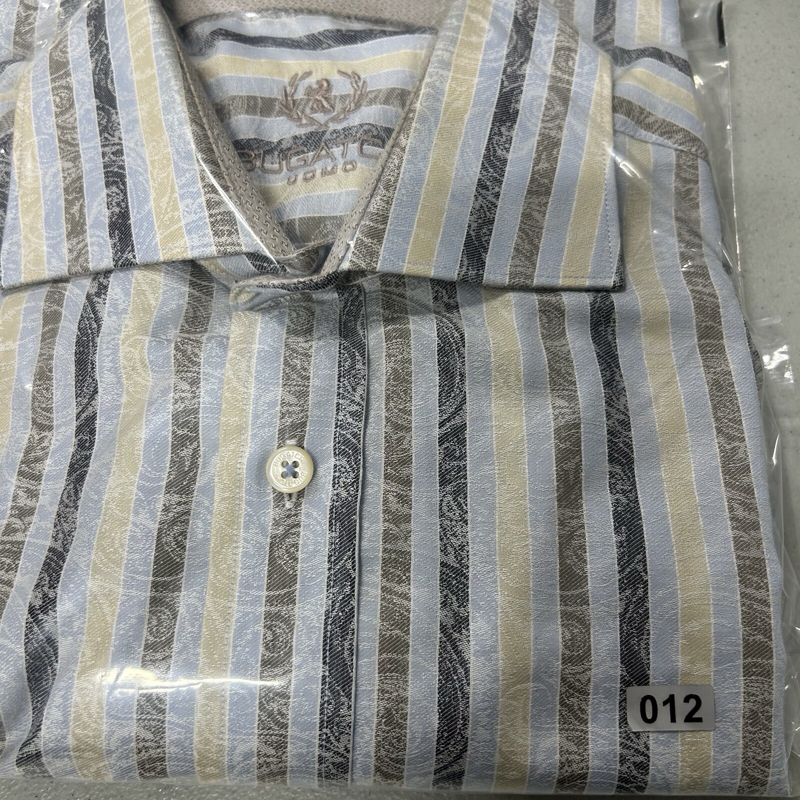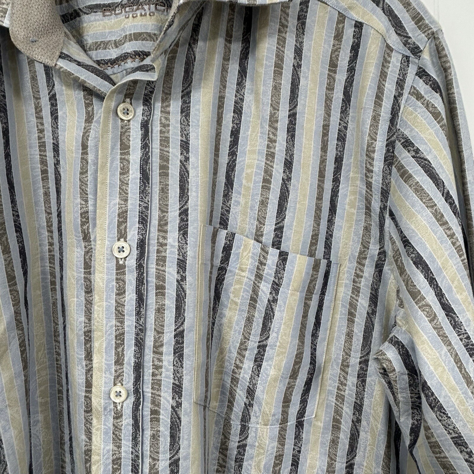 как выглядит Bugatchi Uomo Shaped Fit Shirt Mens Large Blue Striped Spread Collar 100 Cotton фото