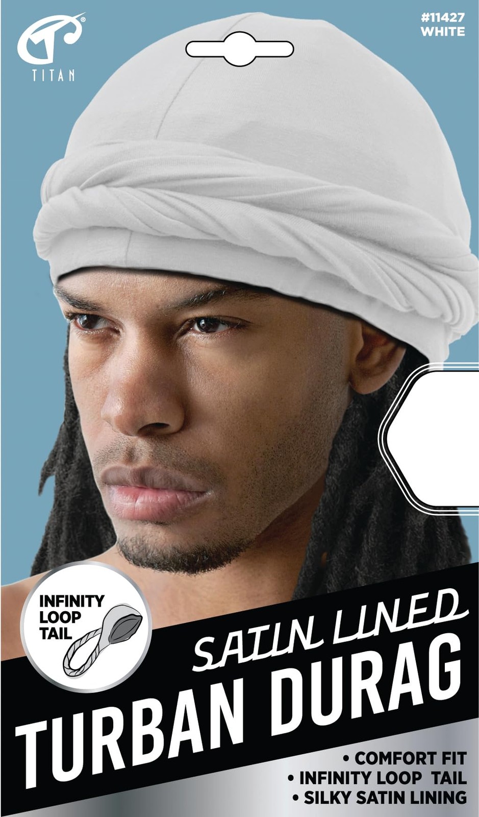 Satin Lined Turban Durag Infinity Loop Tail Headwrap for Men White Durag ...