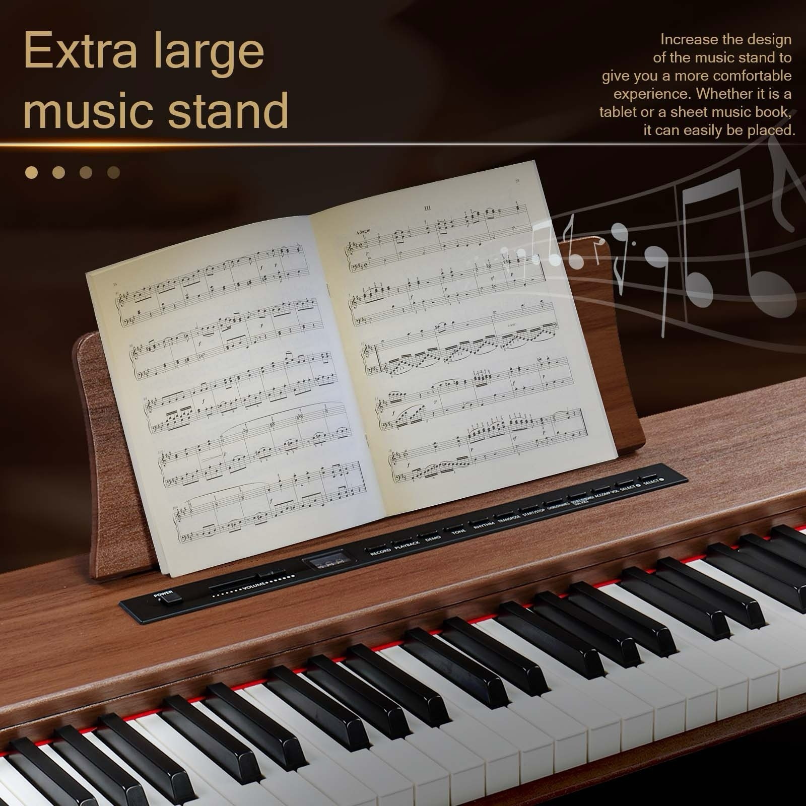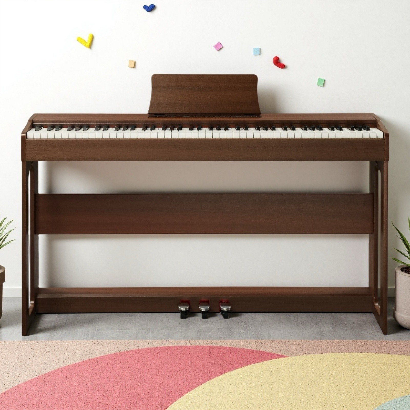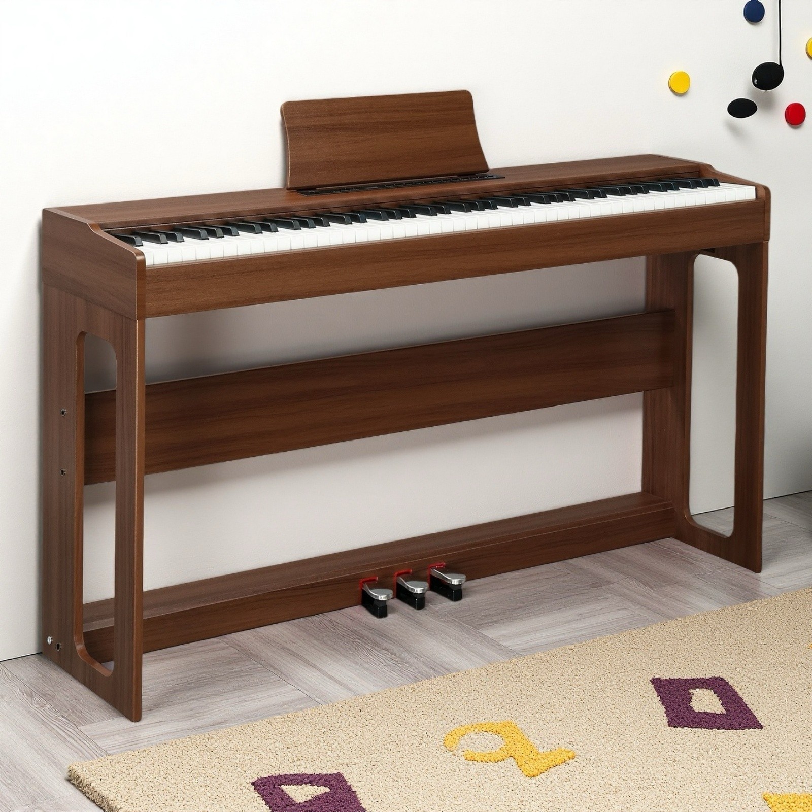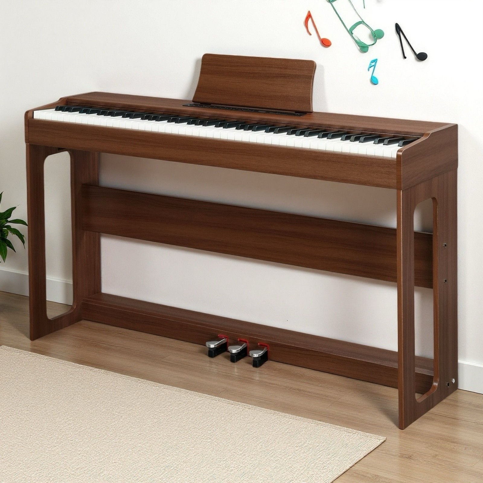 88-Key Full Size Fully Weighted Digital Piano Keyboard Set - 3 Pedal Dark Walnut