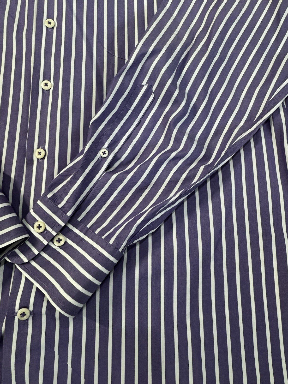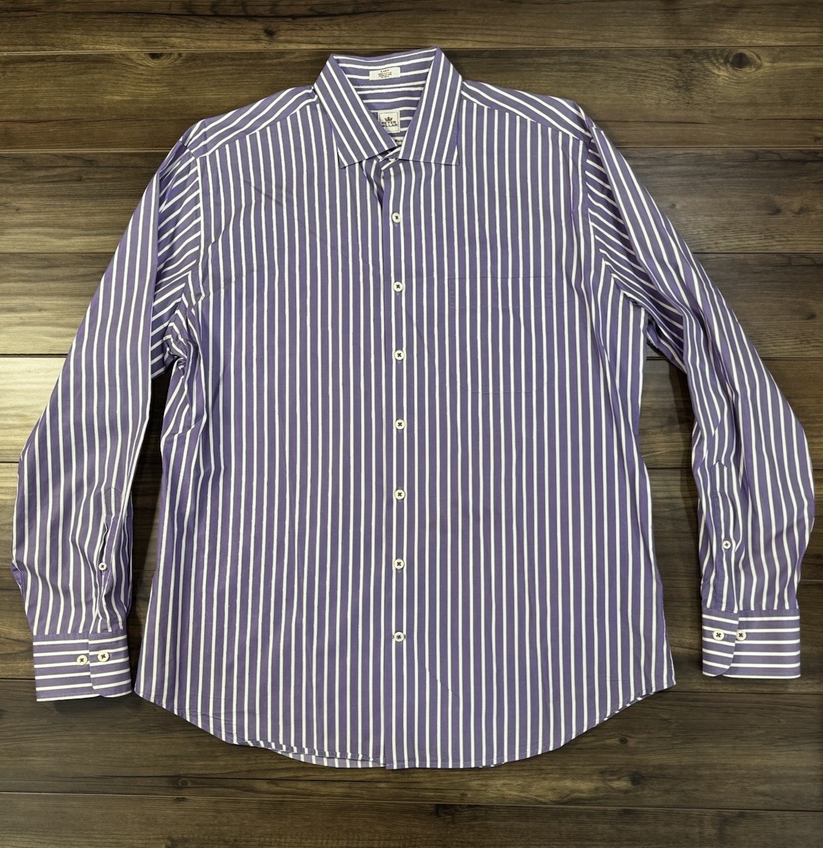как выглядит Peter Millar Mens L Button Down Shirt Weekender Wash Purple Stripe Long Sleeve фото