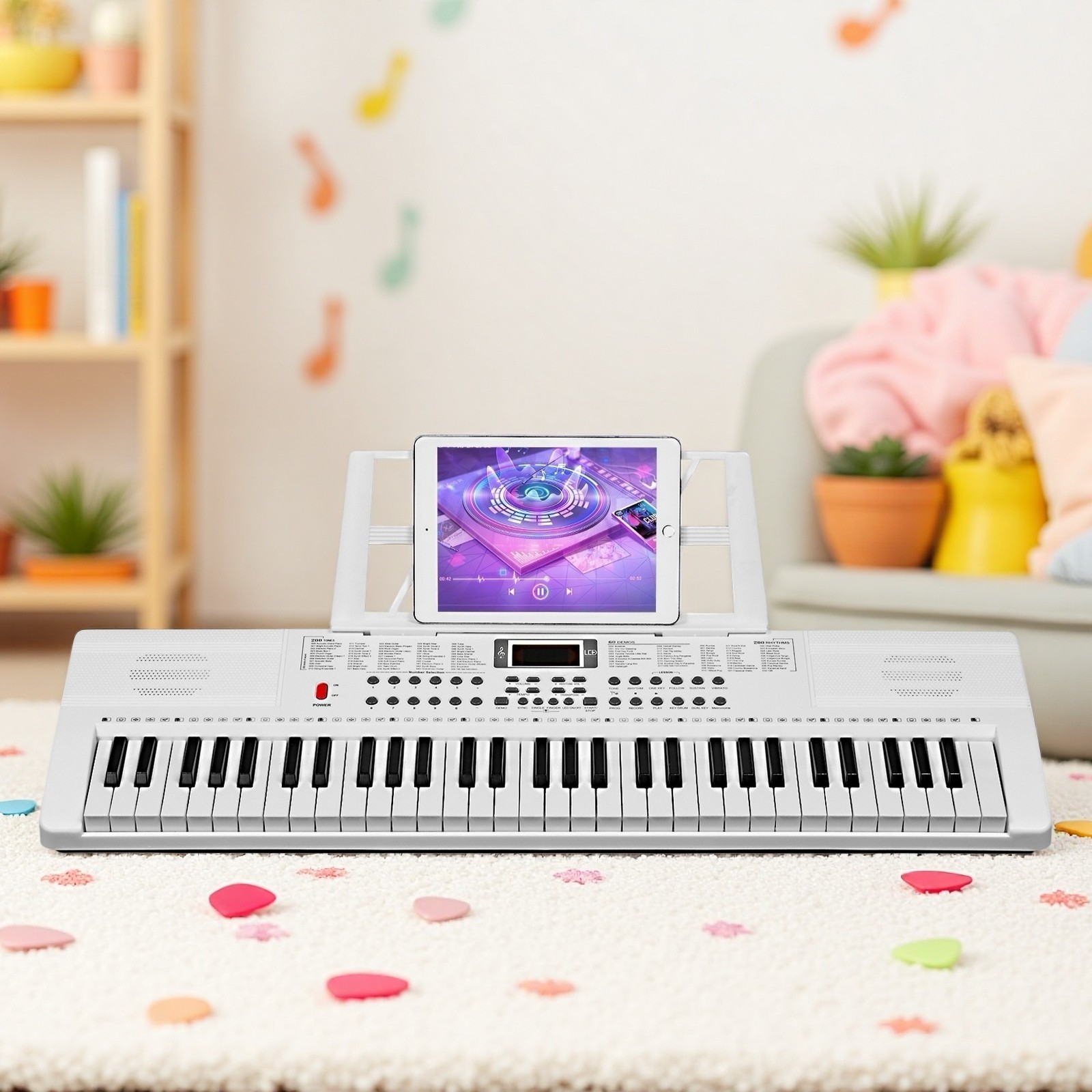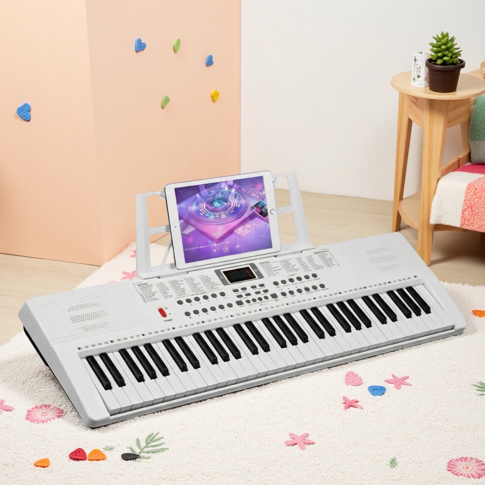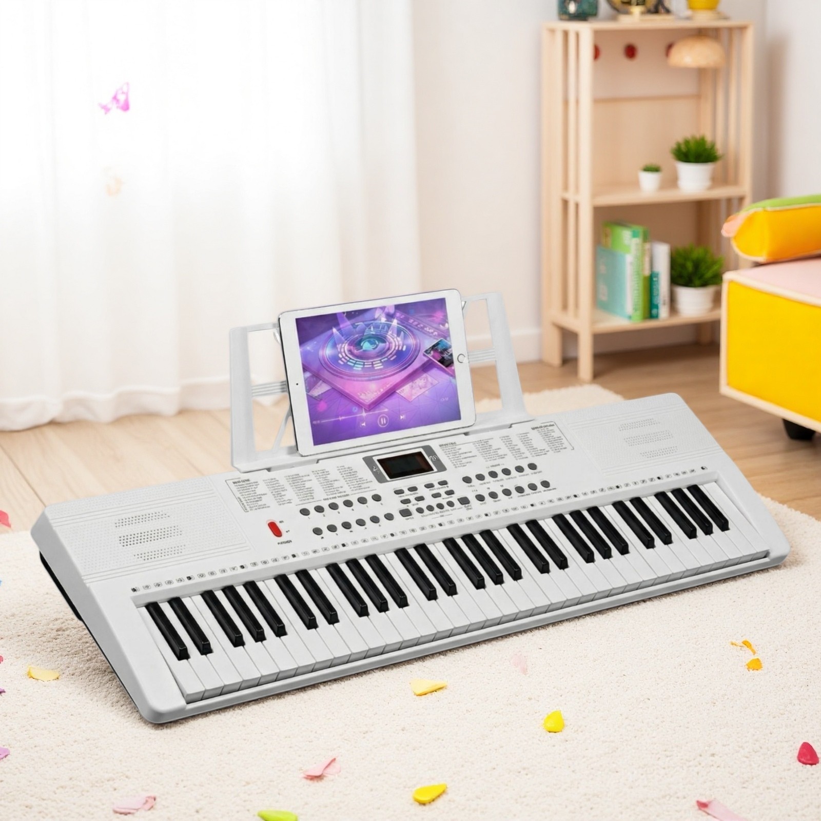 61-Key Light-Up Piano Digital Keyboard Set - White Z-Stand Bench Mic Headphones