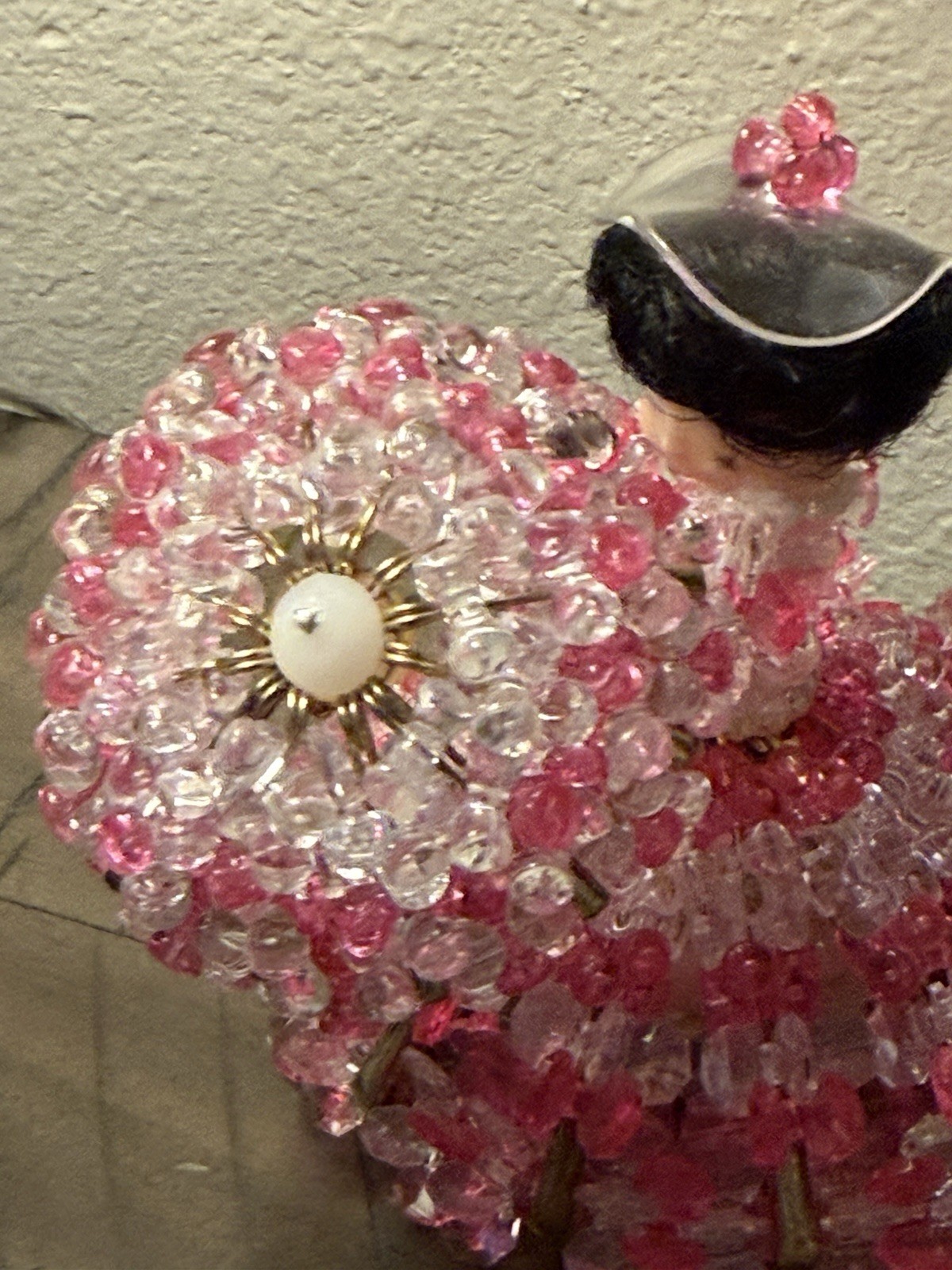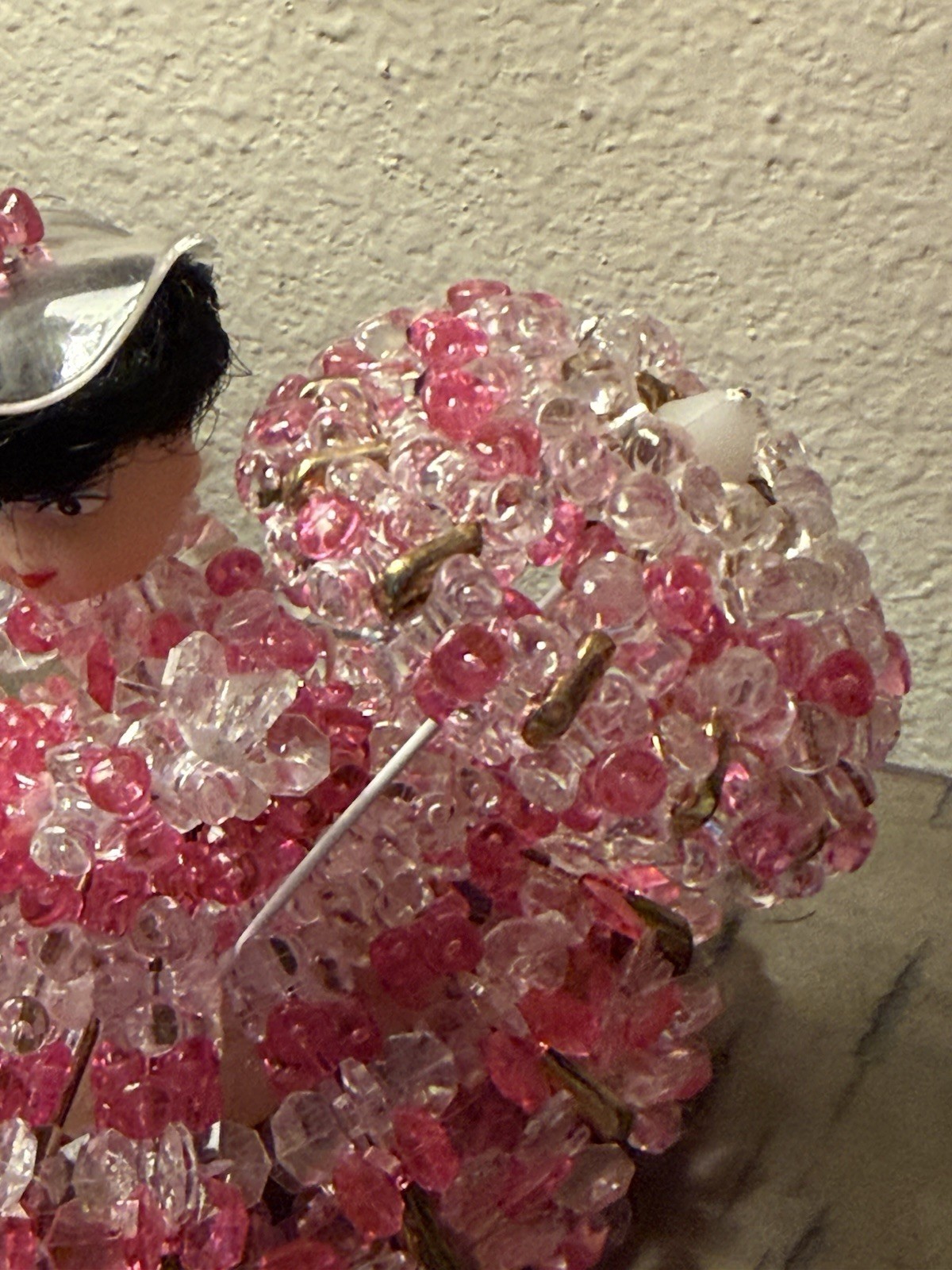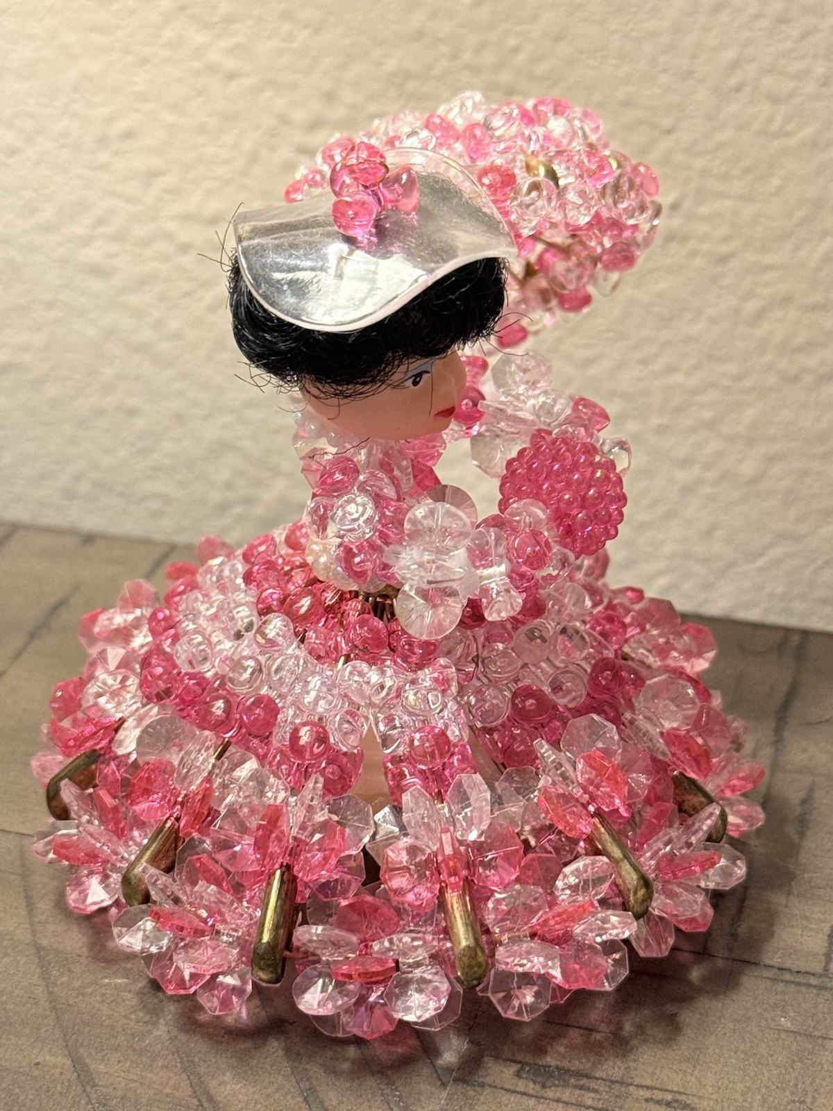 Safety Pin Doll Beads and Baubles Parasol Lady Pink Vintage 4.5