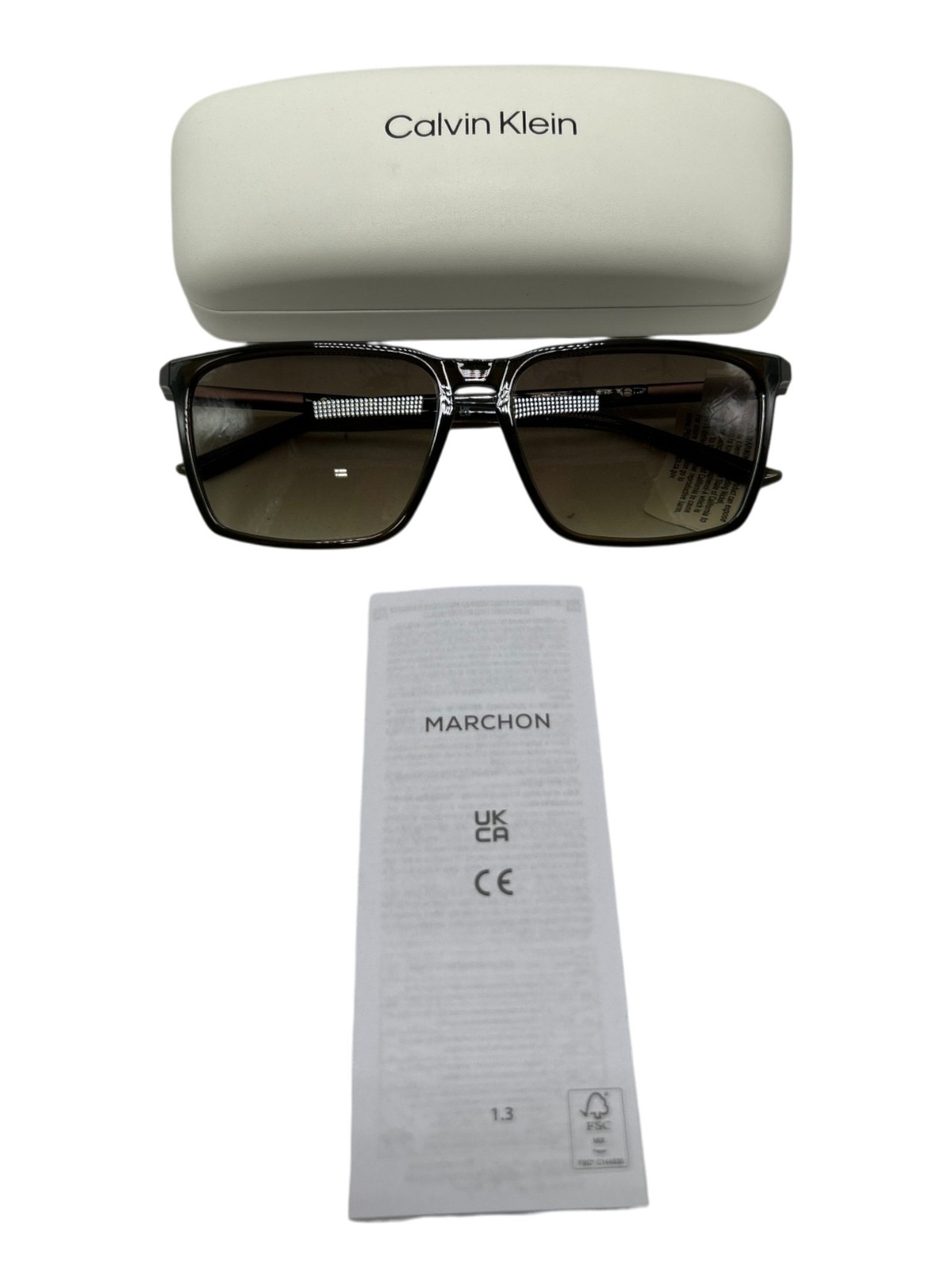 как выглядит Calvin Klein CK25505S Rect Sunglasses 58mm Khaki фото