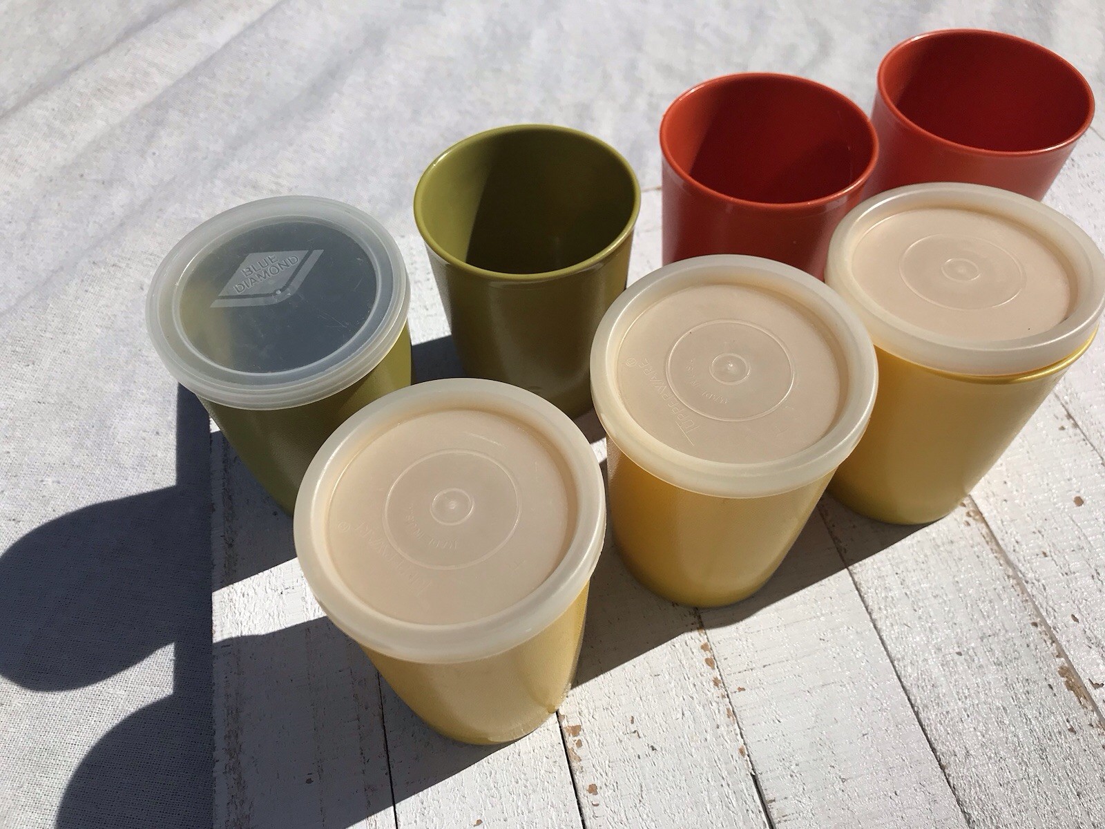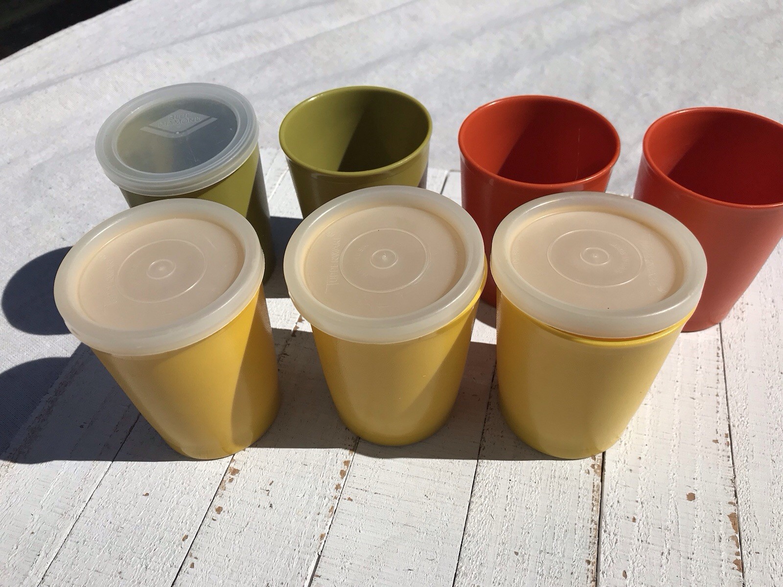 как выглядит Vtg 70s MCM Kids Tupperware drinking cups small 1251 W Lids Harvest Colors 10 Pc фото