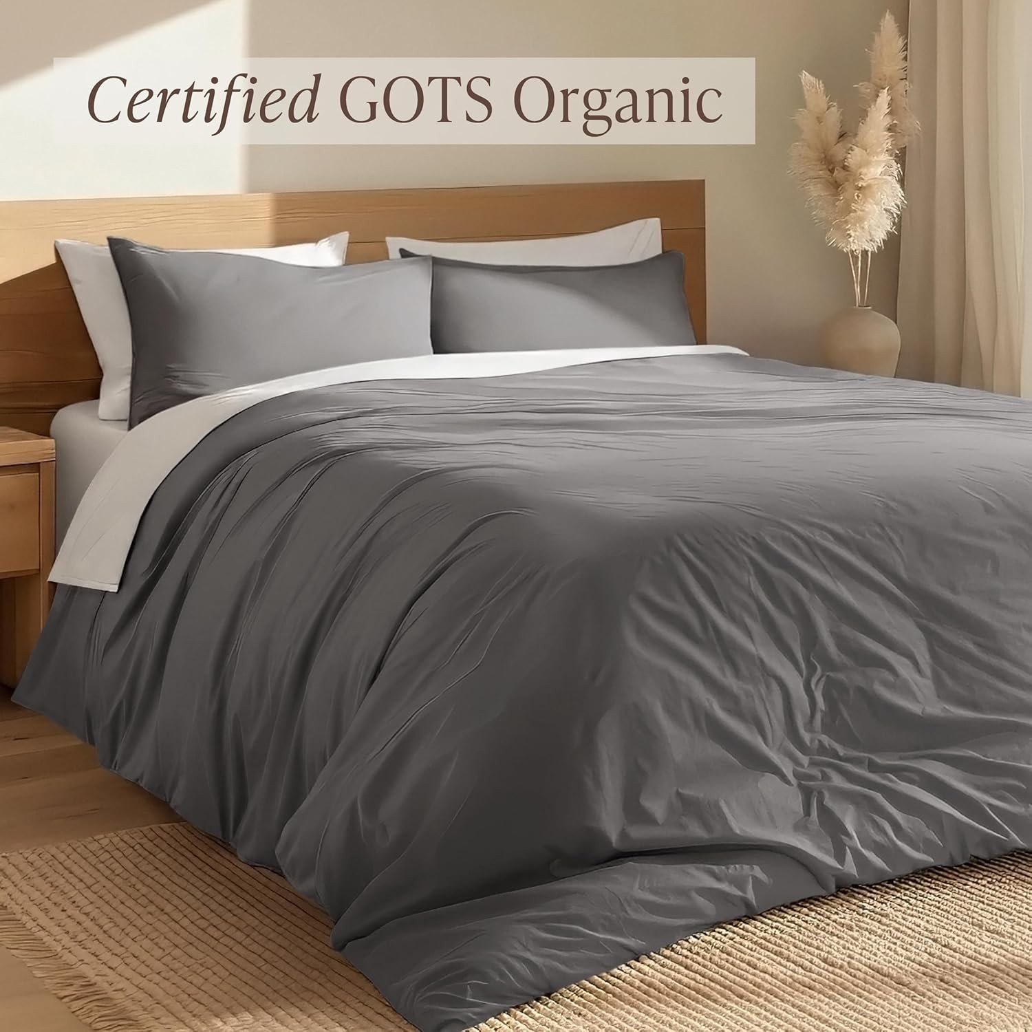 100 Organic Cotton Extra Long Duvet Cover Set Crisp Percale Weave Lightweight