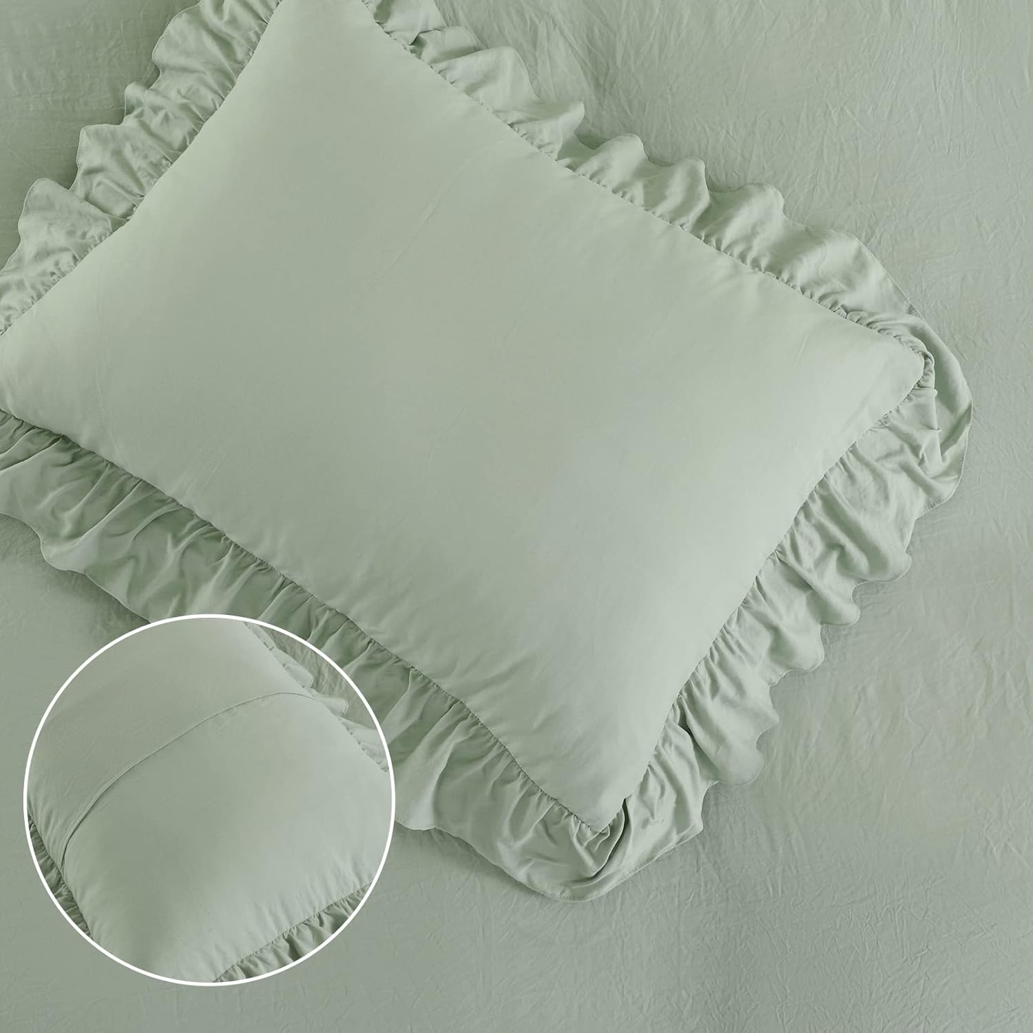 White Ruffle Duvet Cover Queen Size, Soft Washed Microfiber