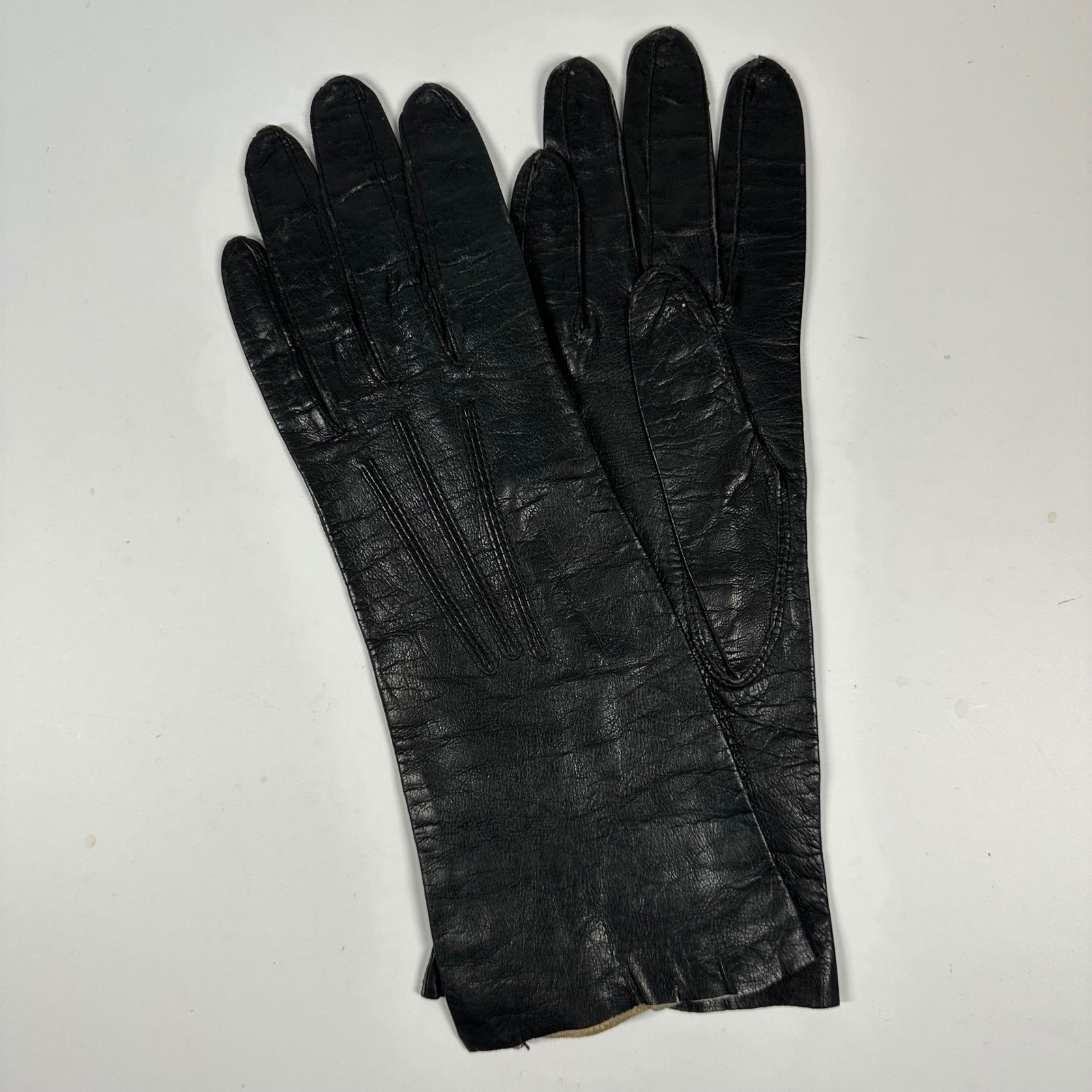 Vintage Black Leather Gloves Aris Kasanova Elegant Formal Party USA Size 6 1/2