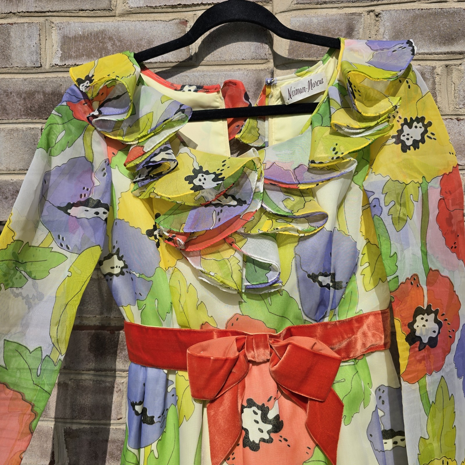Vintage Neiman Marcus Dress Floral Hippie 50s 60s 70s Small 2 4 NOS Union