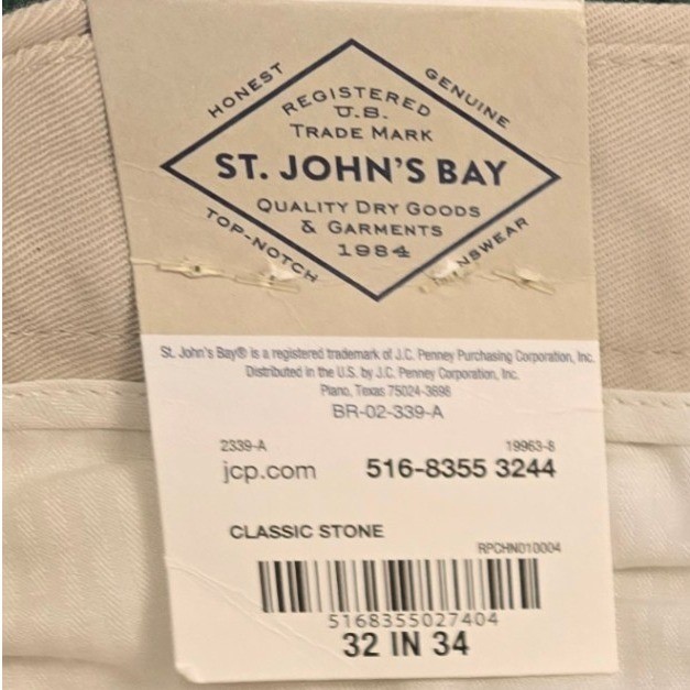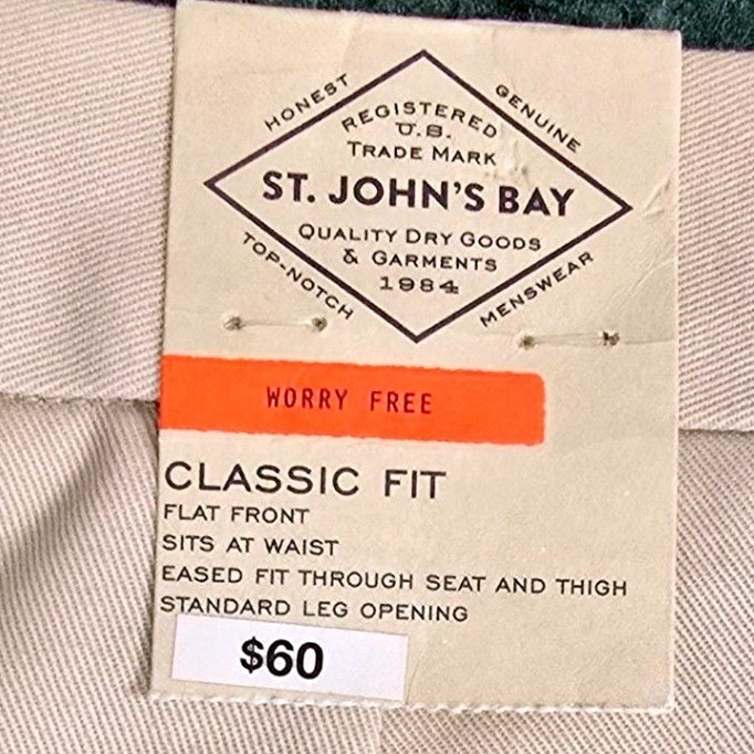 как выглядит St Johns Bay Mens Worry Free Classic Fit Flat Front Pants 32x34 Stone Khaki NWT фото