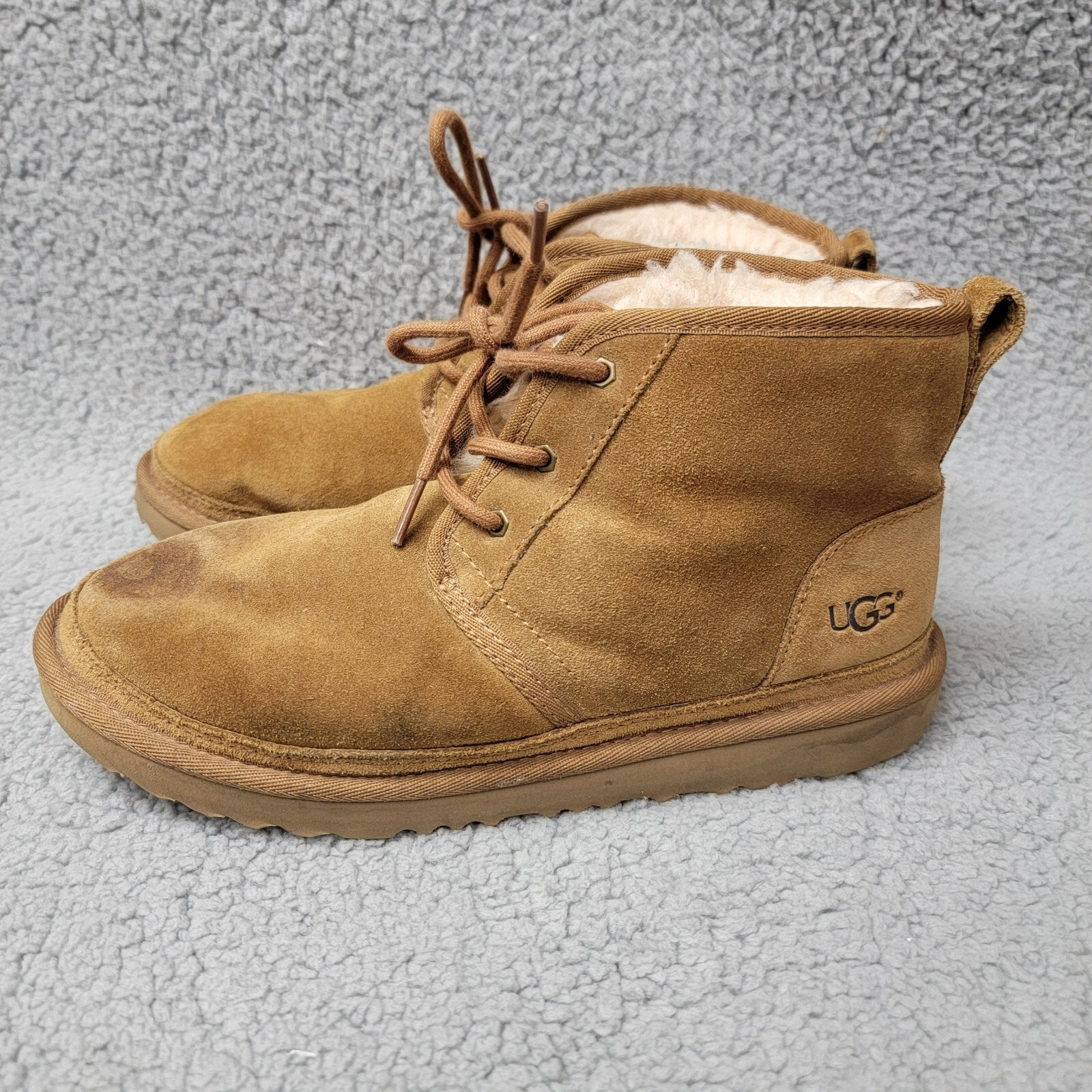 UGG Neumel Chukka Boot Womens Size 6 Chestnut Brown Suede Sheepskin Lace Up