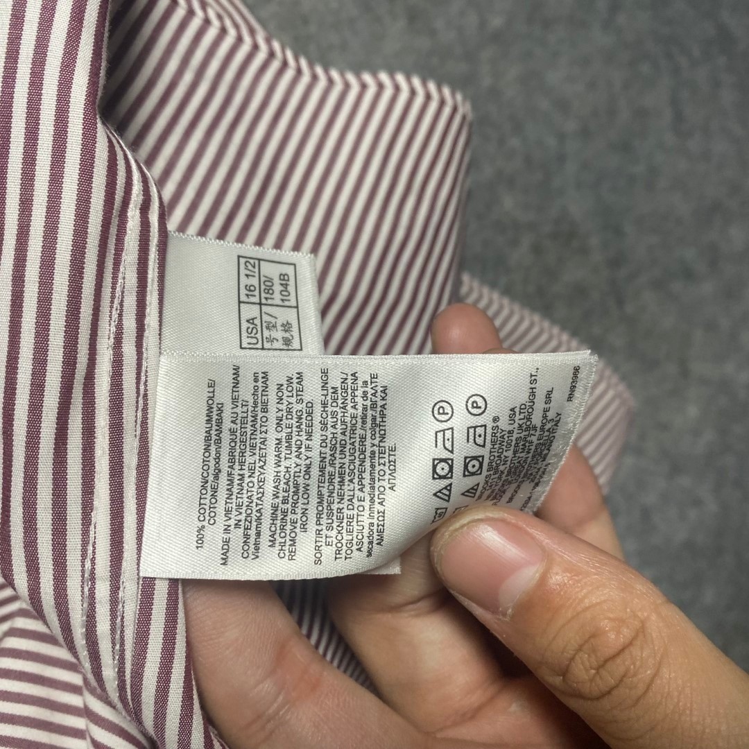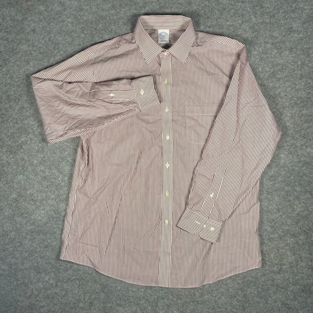 как выглядит Brooks Brothers Regent Fit Non Iron Striped Dress Shirt Men 16.5- 2/3 Burgundy фото