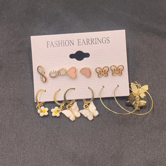 как выглядит New butterfly earrings set 6 pairs creative butterfly earrings heart earrings фото