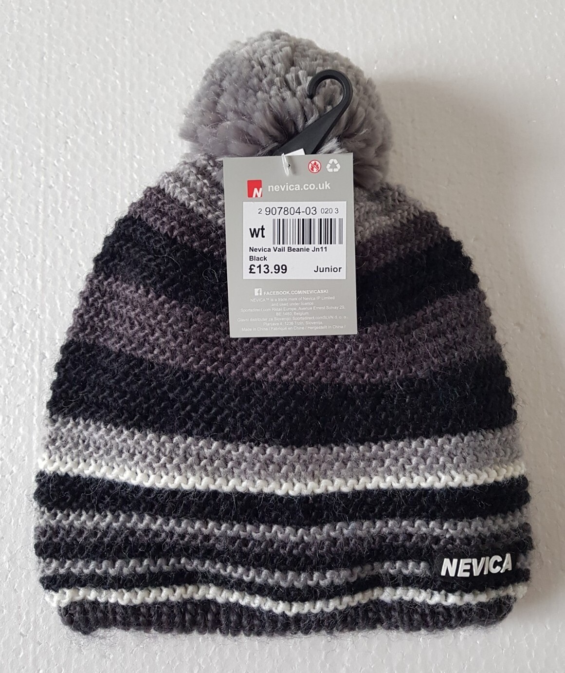 NEVICA VAIL BEANIE - JUNIOR black BOBBLE HAT grey WINTER boys UNISEX girl SKIING