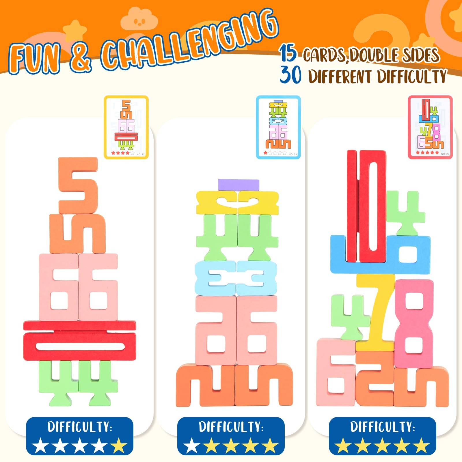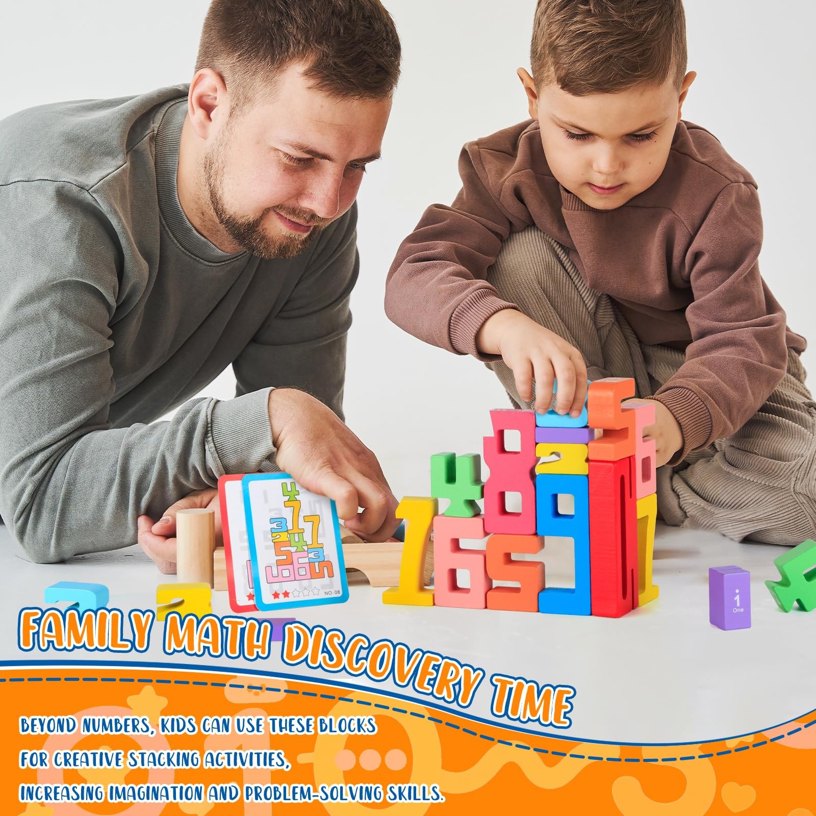 20Pcs Wooden Number Building Blocks,1-10 Montessori Small, Multiple Colors
