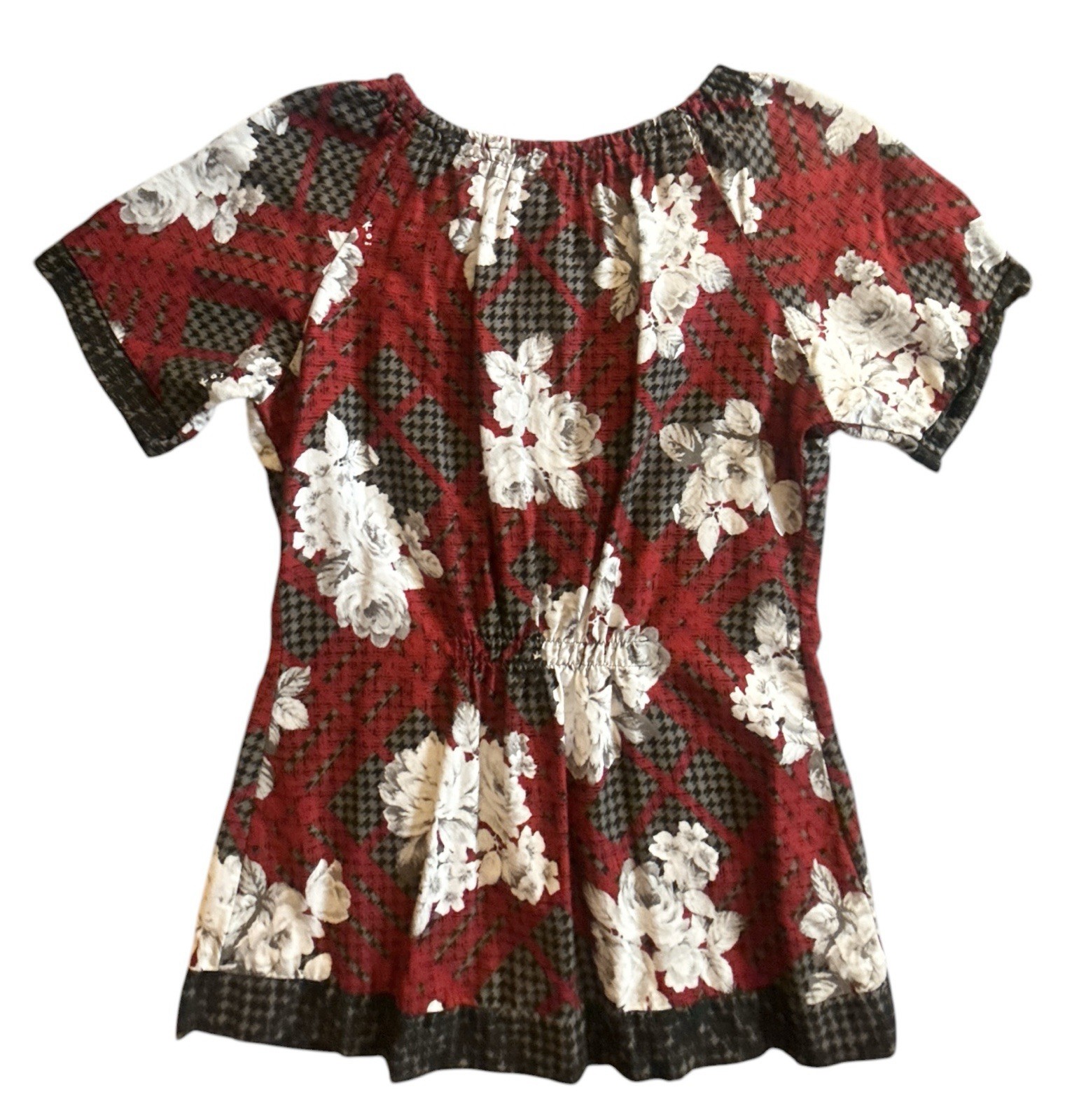 Koi by Kathy Peterson Bella Scrub Top Red Black White Floral Novelty Buttons SM