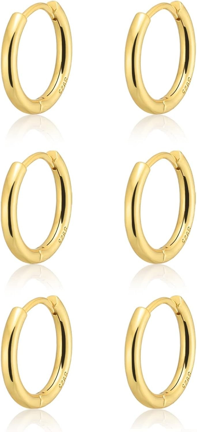 Small Gold Huggie Hoop Earrings Set for Women Men, Hypoallergenic 14K Gold Pl...