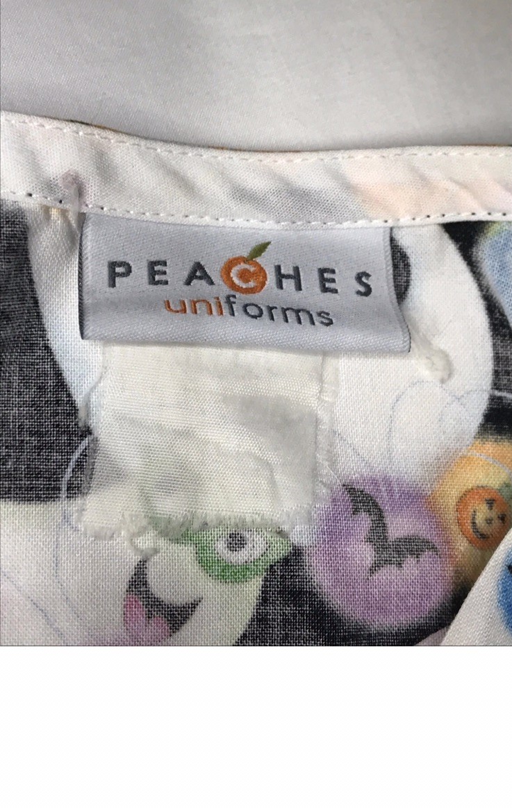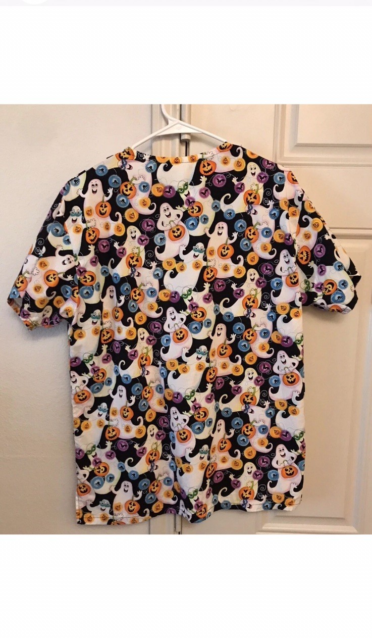 как выглядит Peaches Womens Scrub Top M Halloween Ghosts Pumpkins Bats Cotton фото