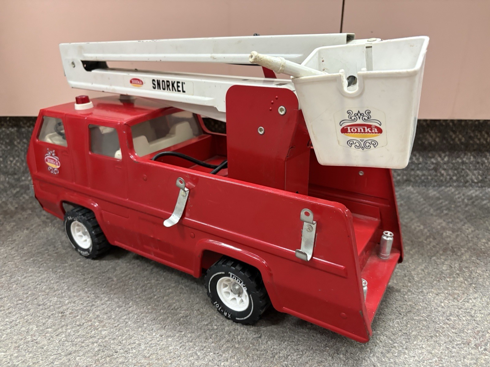 Vintage Tonka Toys Pressed Steel Red 2950 Snorkel Fire Truck w/ Fire Hydrant