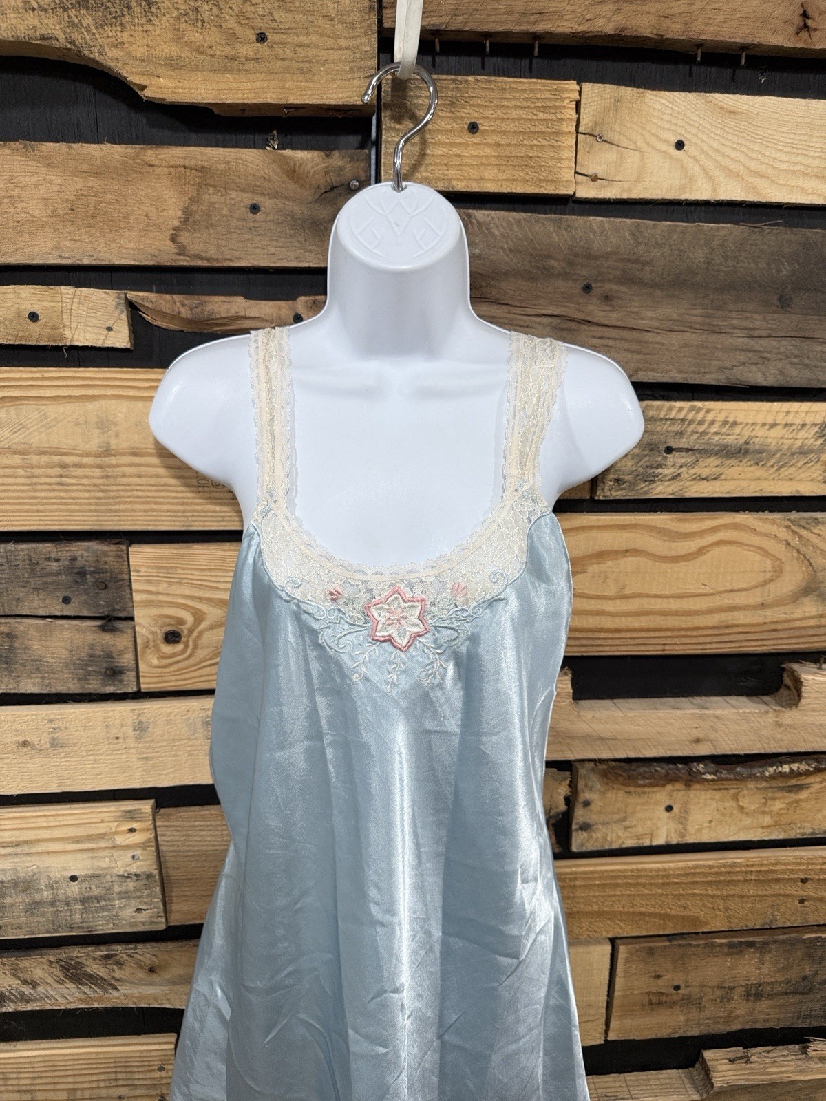 Val Mode Vintage Women s Baby Blue Satin Ivory Lace Short Nightgown Medium