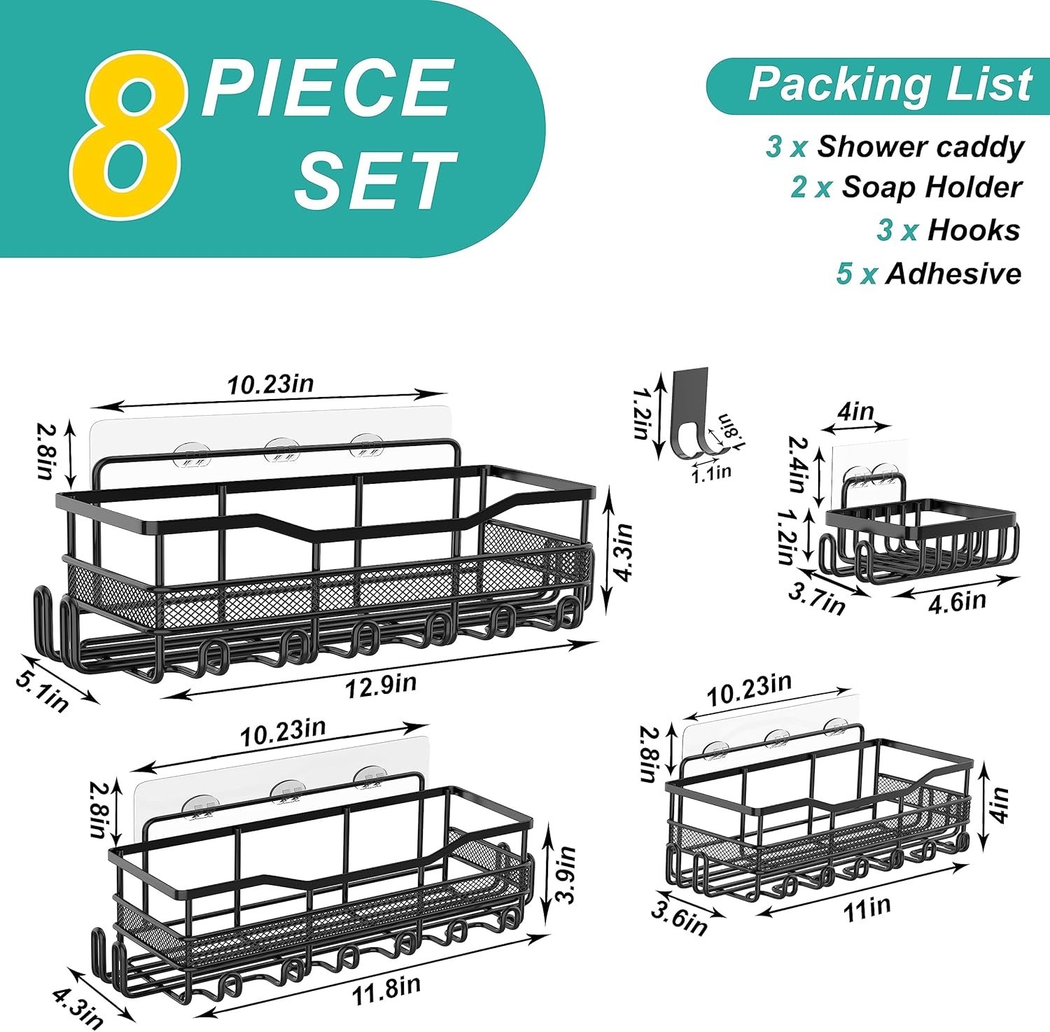 Shower Caddy 8Pcs - Self Adhesive Bathroom Shower Organizer Storage Stainless