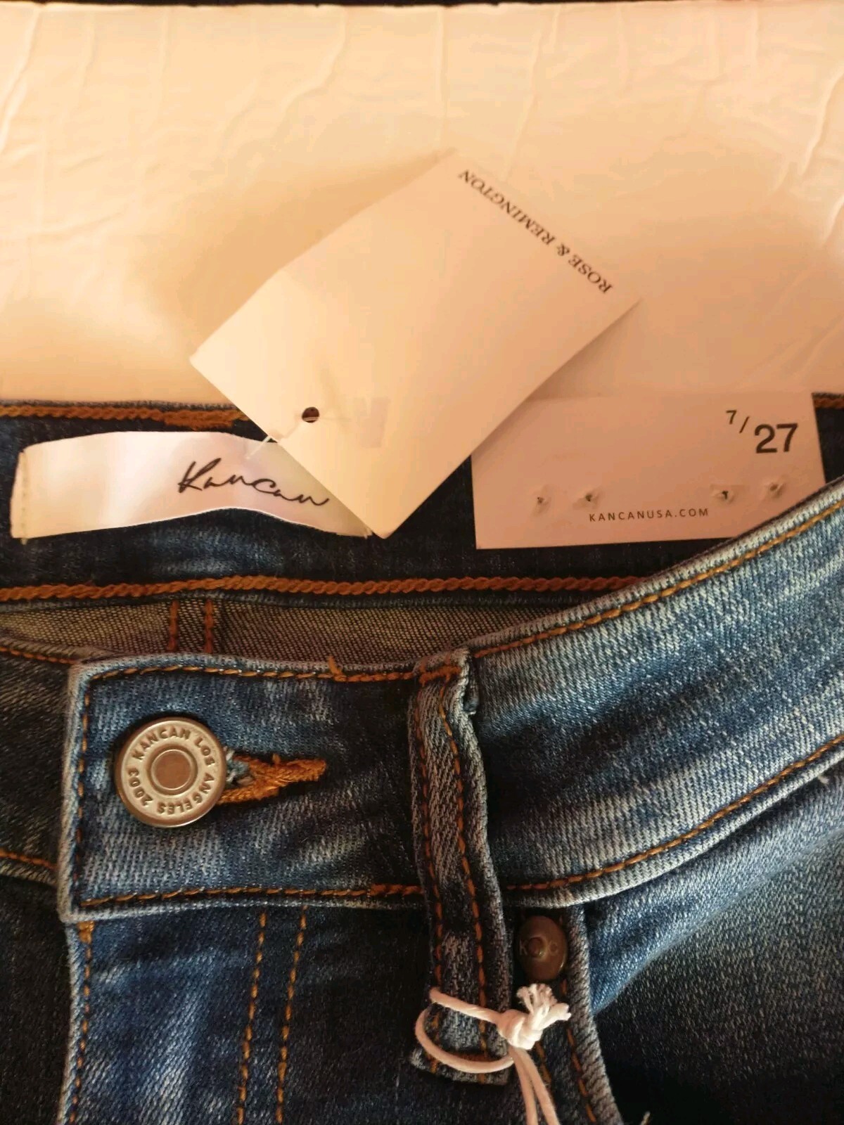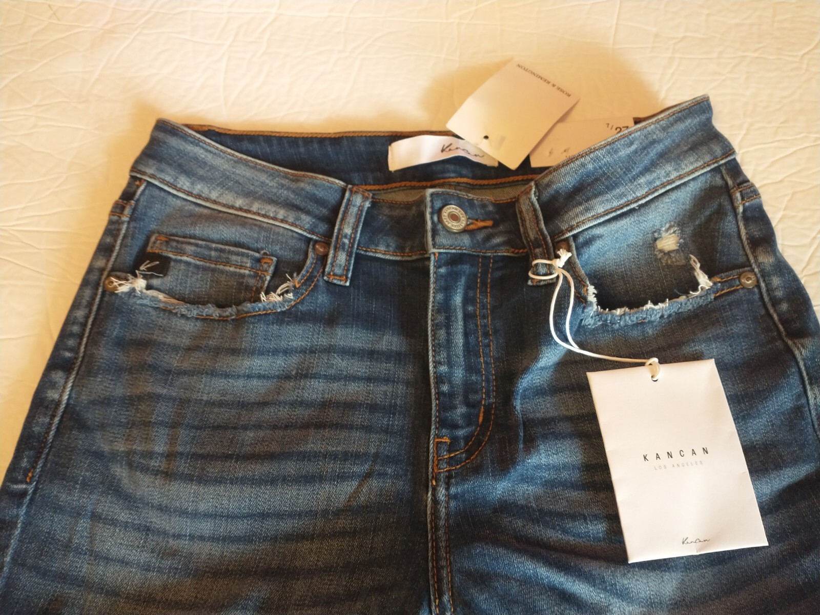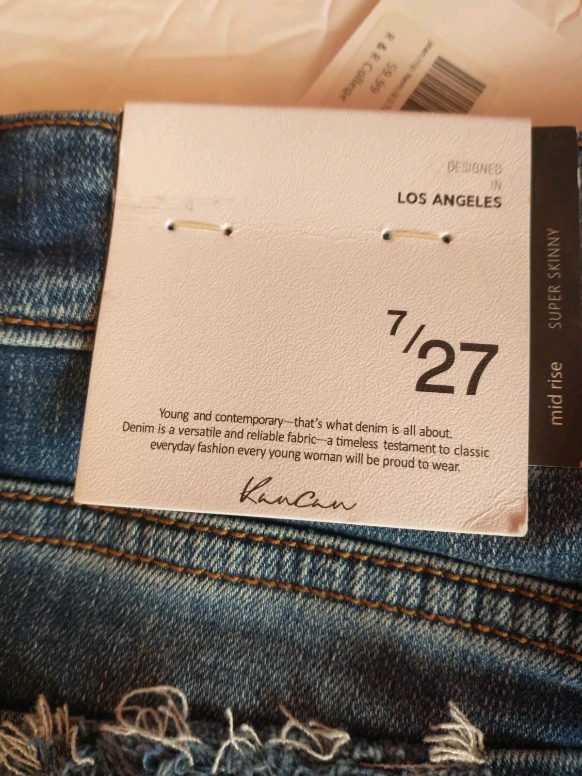 как выглядит NWT - Kancan 7/27 Super Skinny Mid Rise Distressed Jeans фото