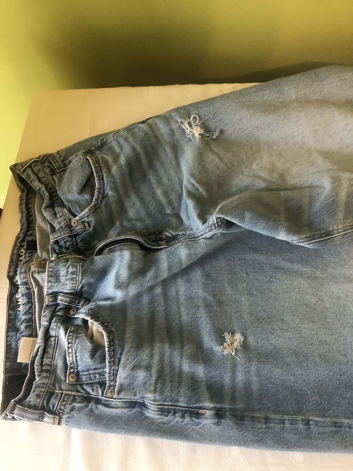 American Eagle Jeans Women s High Rise Baggy Wide Leg Size 10 Distressed Read