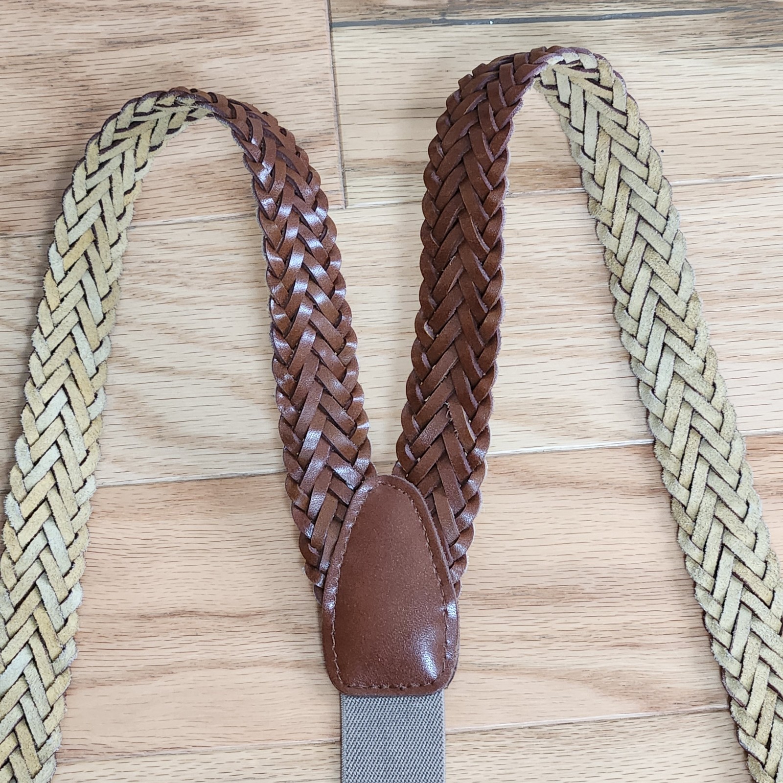 Braided Split Leather Stretch Y-Back Button Down Suspenders Braces Adjustable