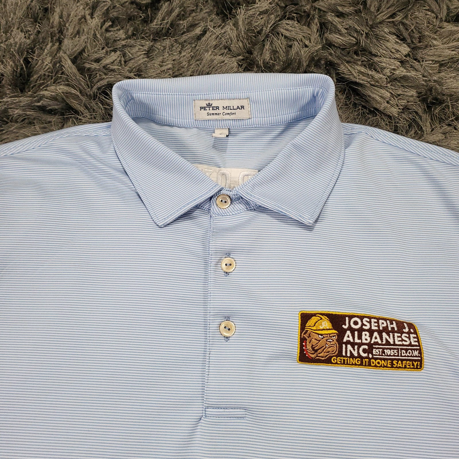 Peter Millar Summer Comfort Polo Shirt Mens Large Light Blue Golf Logo Stretch