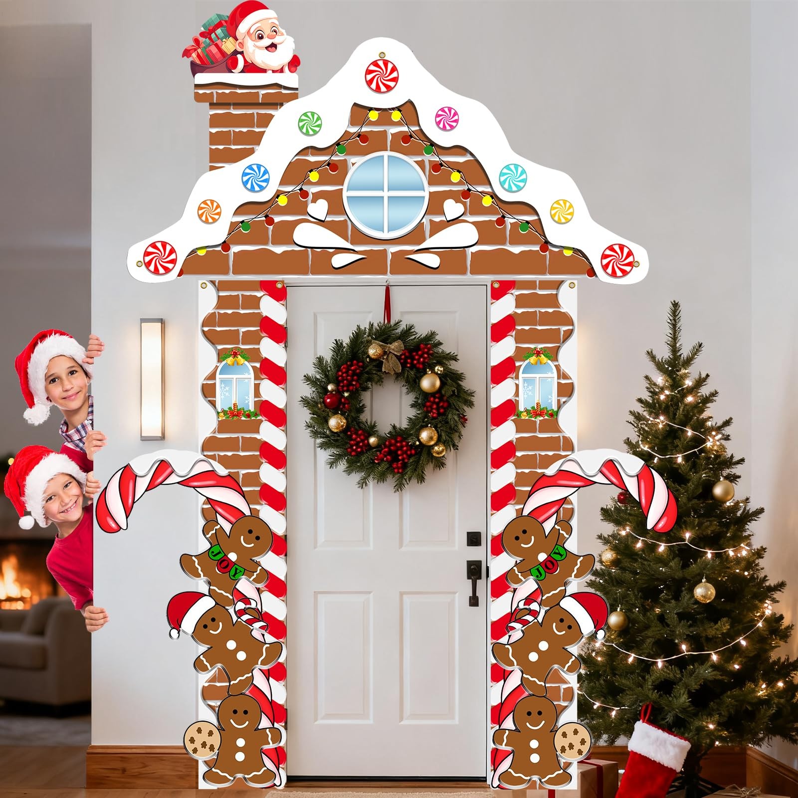 3Pcs Christmas Gingerbread Door Cover 112.2 x 70.86 inches, Red