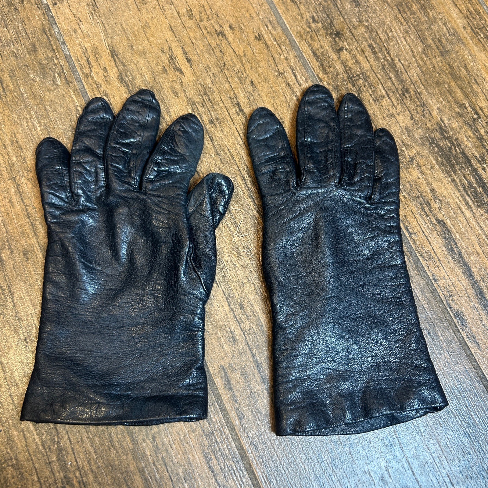 как выглядит Fownes Gloves Vintage Black Leather 100 Cashmere Lined Size 6 1/2 фото