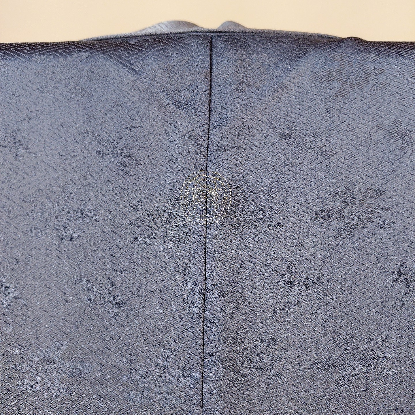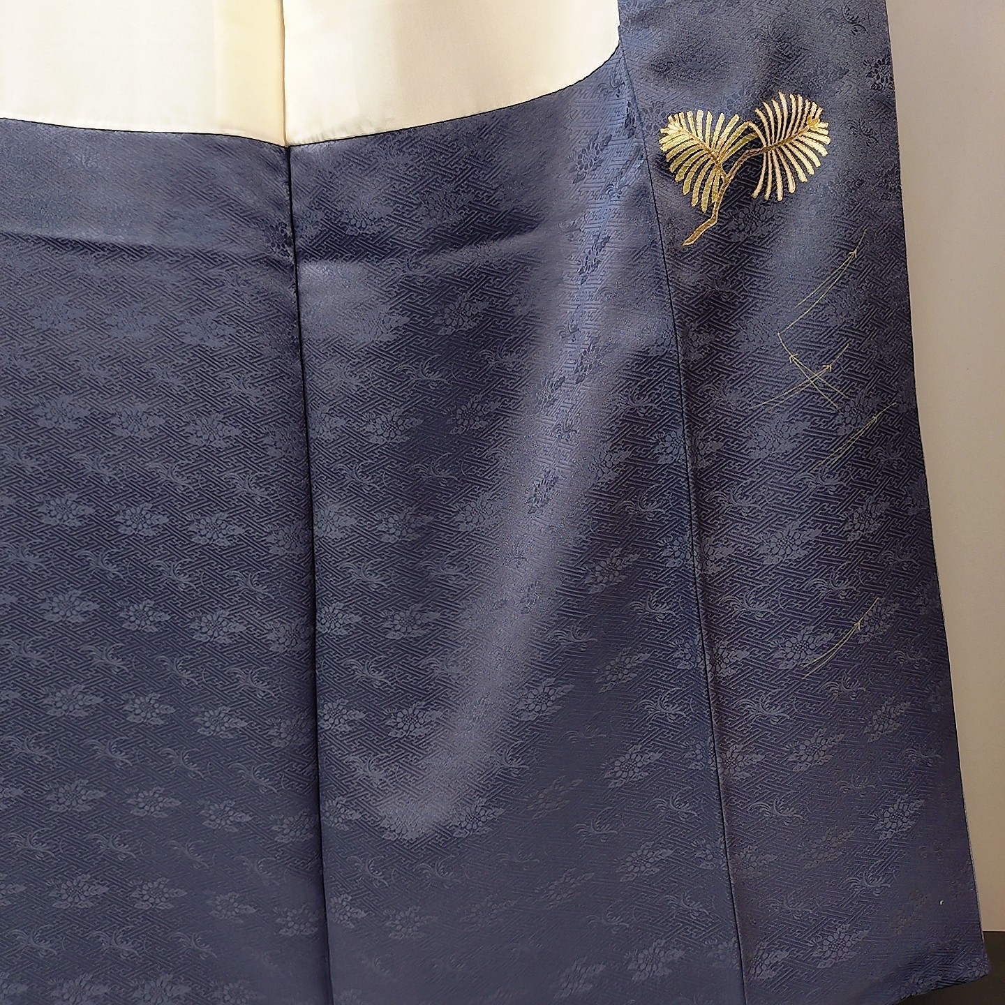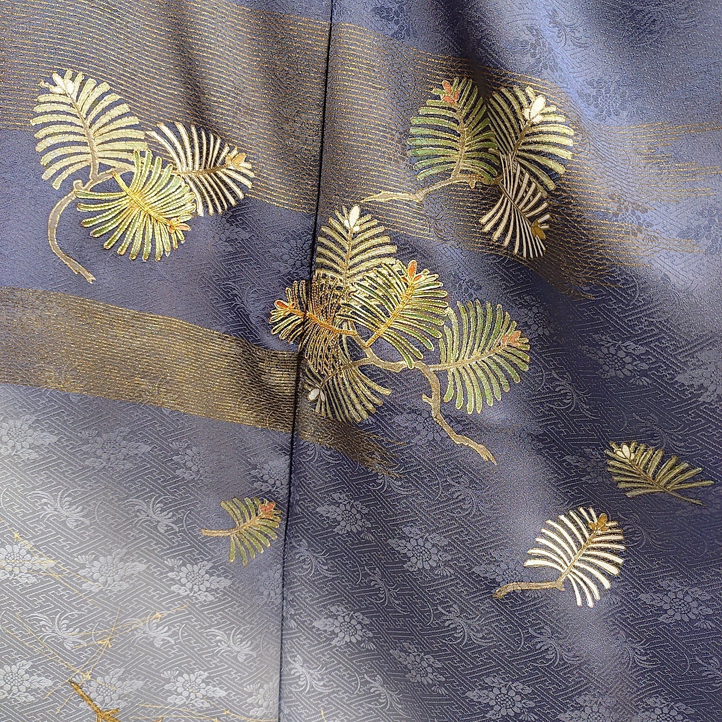 • Vintage Japanese Silk Kimono Robe Blue Gray Gold Pine Mist