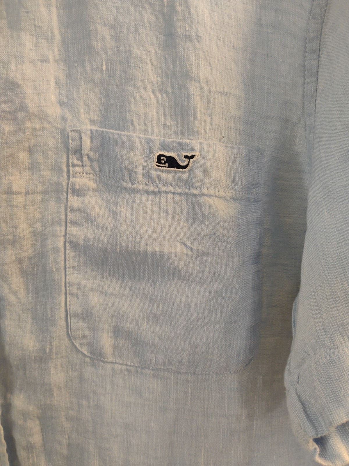 как выглядит Vineyard Vines Mens Short Sleeve Light Blue Linen Casual Shirt Large 0918 фото