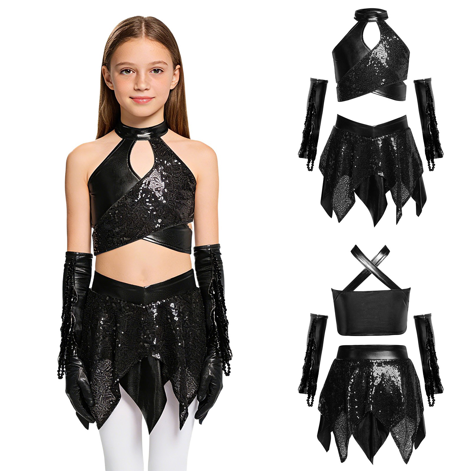 Kids Girls Dancewear Raves Dance Skirt Set 2 Piece Outfits Birthday Jazz Party