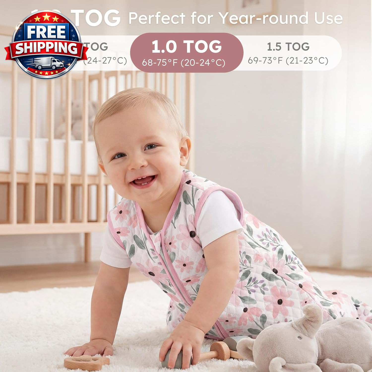 Organic Cotton Baby Sleep Sack 0-6 Months 1.0 Tog 2-Way Zipper Quilted Blanket